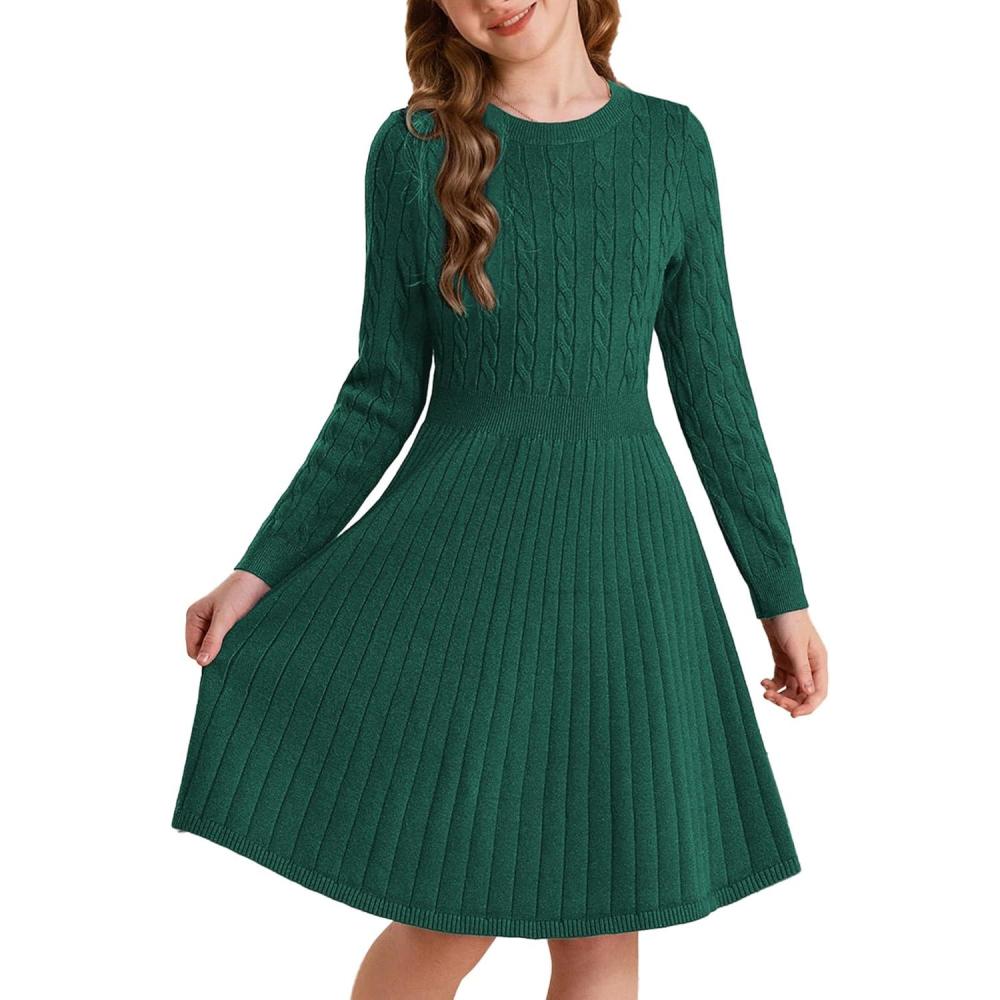 imageGRACE KARIN Girls Sweater Dress Long Sleeve Knit A Line Casual Midi Fall Winter Dresses 612 YearsGreen