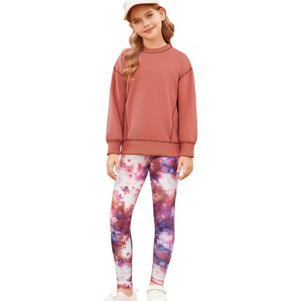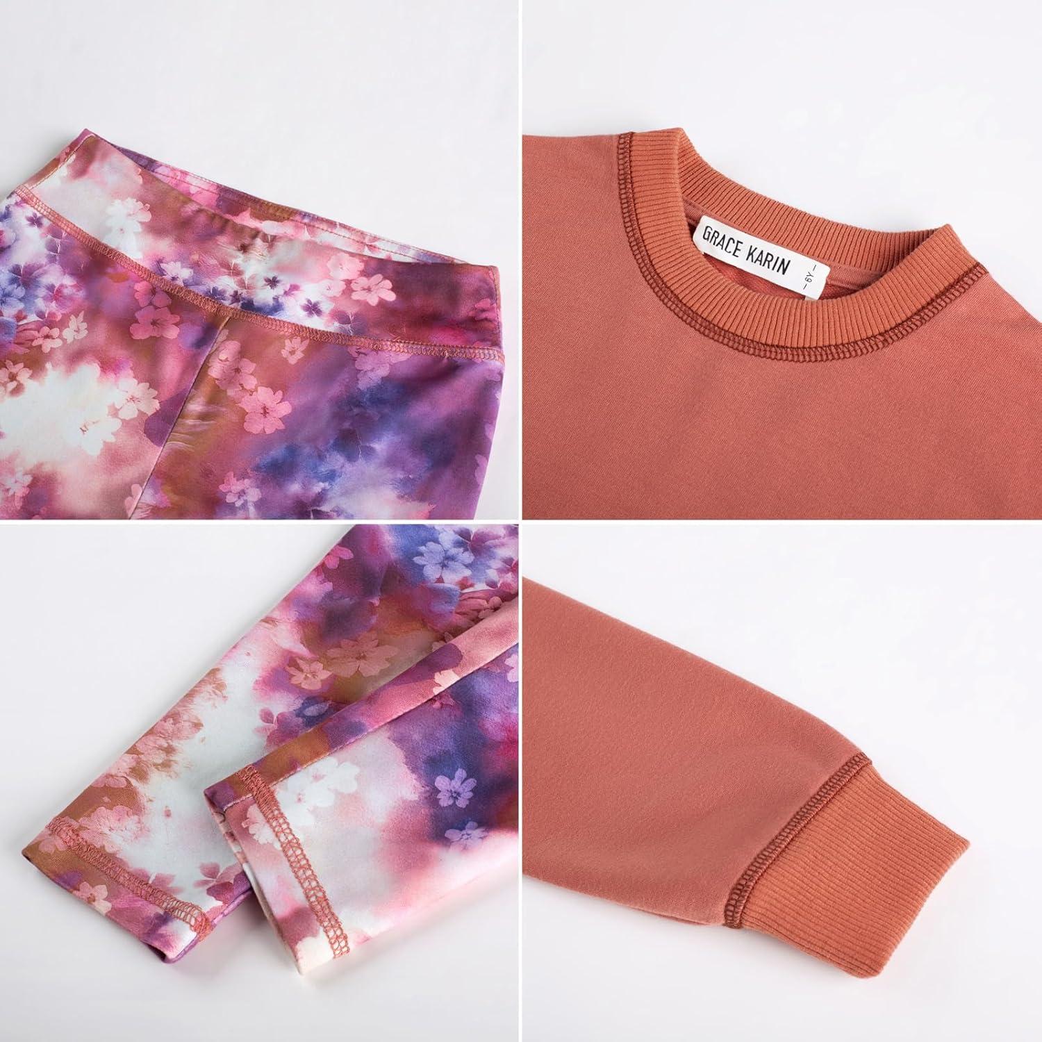 GRACE KARIN Girls Sweatshirt Leggings Set 6-14Y Fall Athletic Outfit Teen Fashion Clothes Set(Burnt Orange)