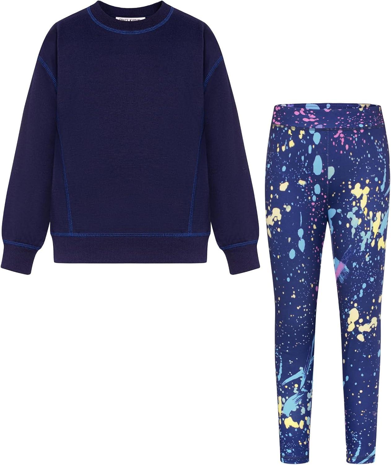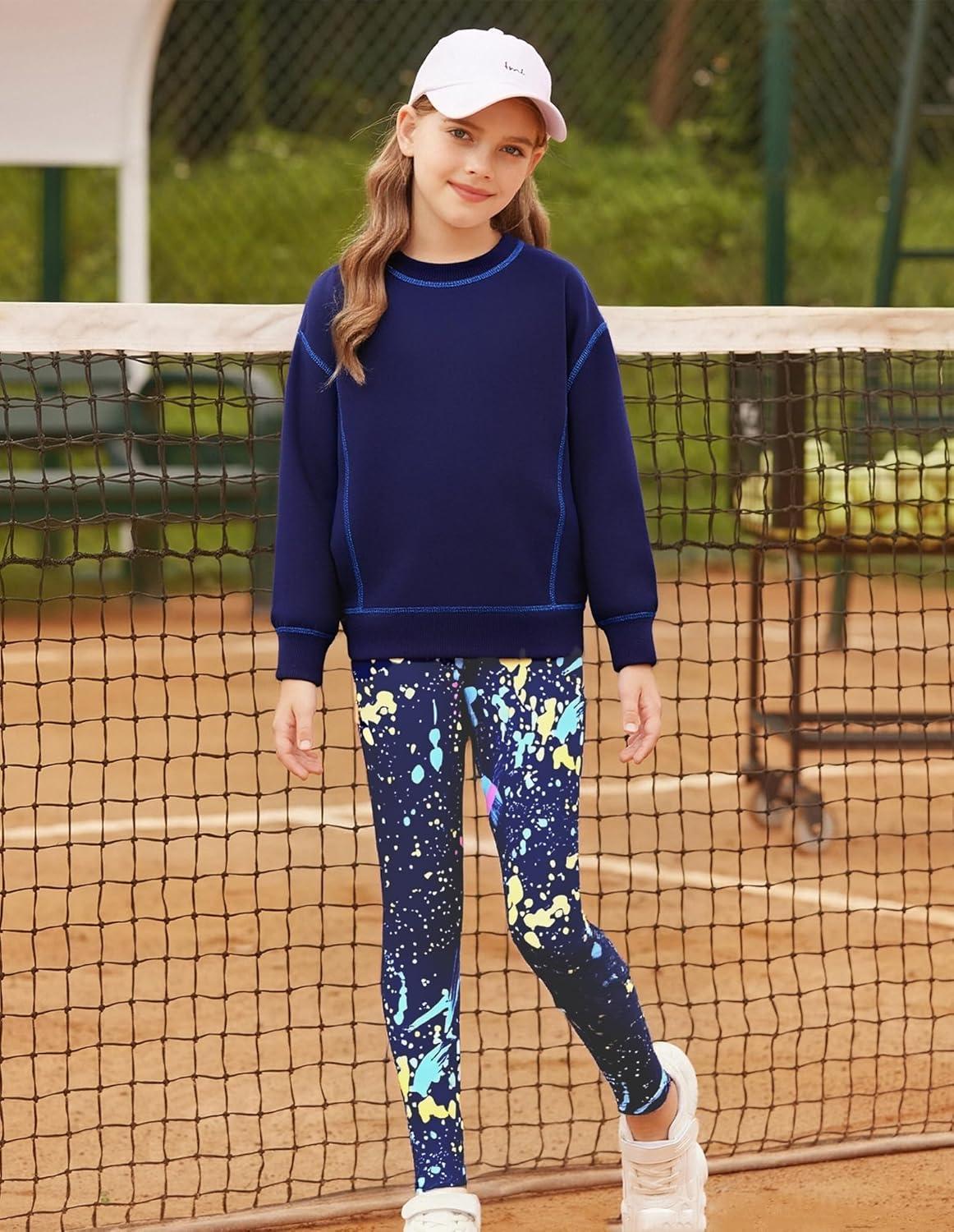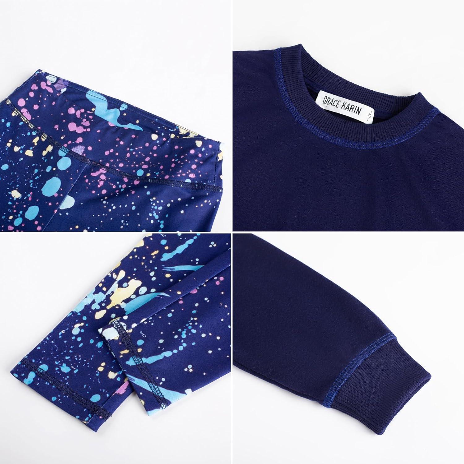 GRACE KARIN Girls Sweatshirt Leggings Set 6-14Y Fall Athletic Outfit Teen Fashion Clothes Set(Navy Blue)