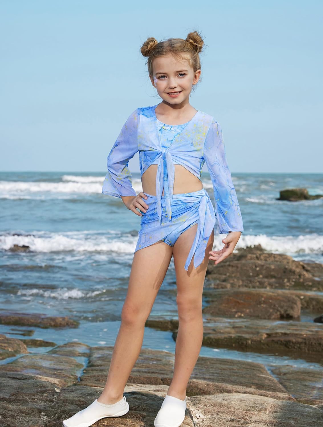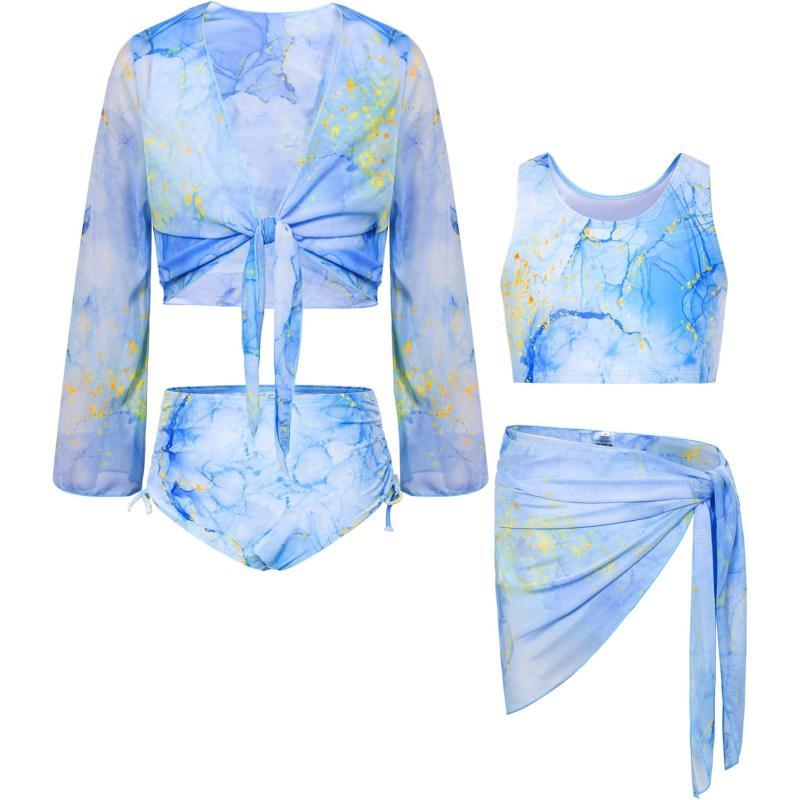 GRACE KARIN Girls Swimsuit 4 Piece Bikini Set Bathing Suit with Kimono Cover Up 614Bluegreen