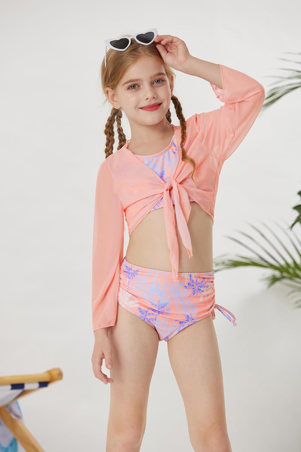 GRACE KARIN Girls Swimsuit 4 Piece Bikini Set Bathing Suit with Kimono Cover Up 614Light Pink