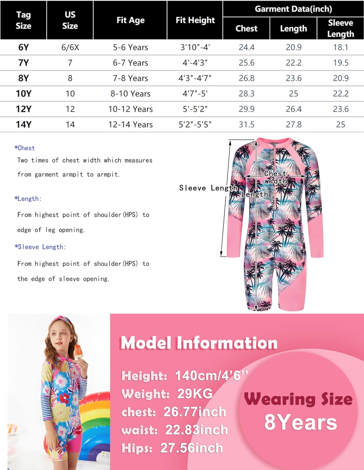 GRACE KARIN Girls Swimsuit Girls One Piece Long Sleeve Rash Guard 5-12 Years with Zip(Blue Flower 1)