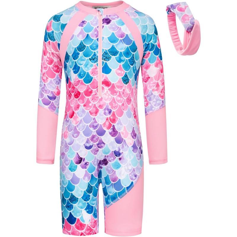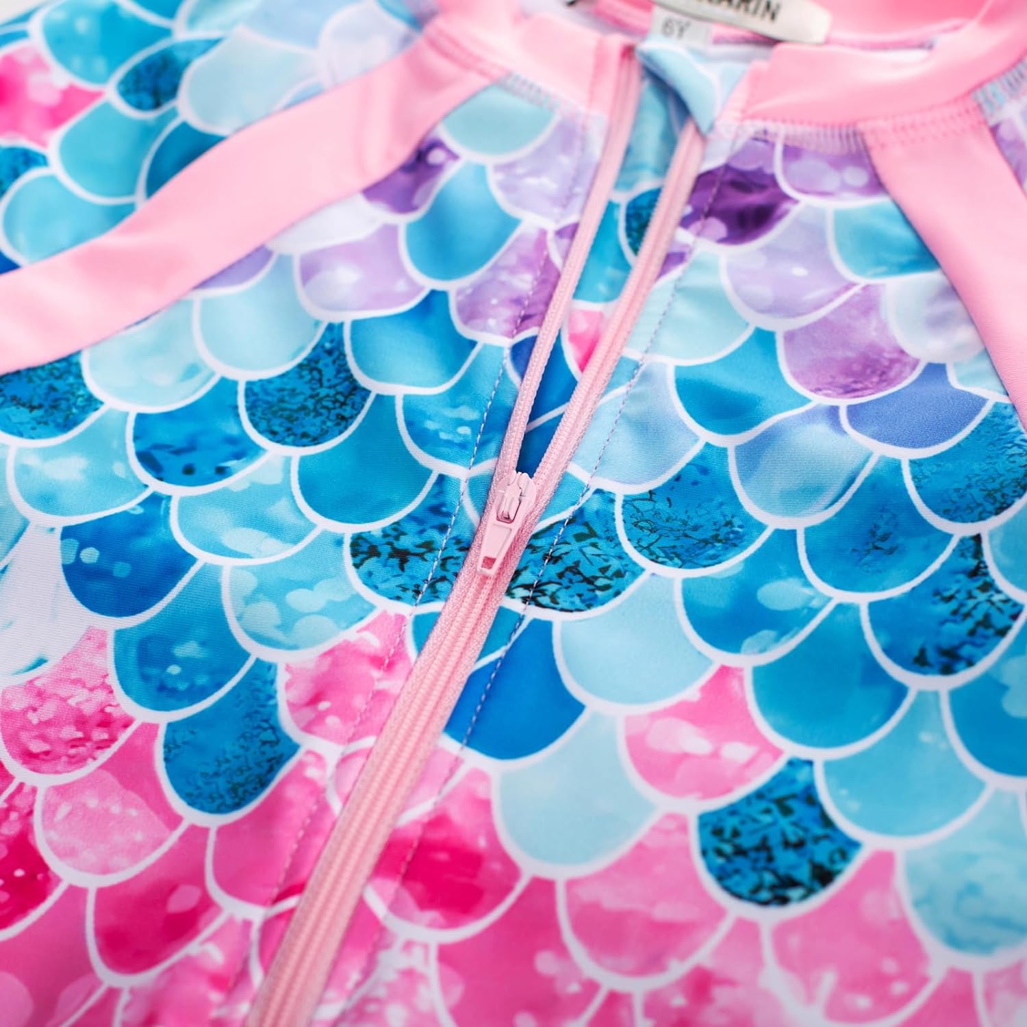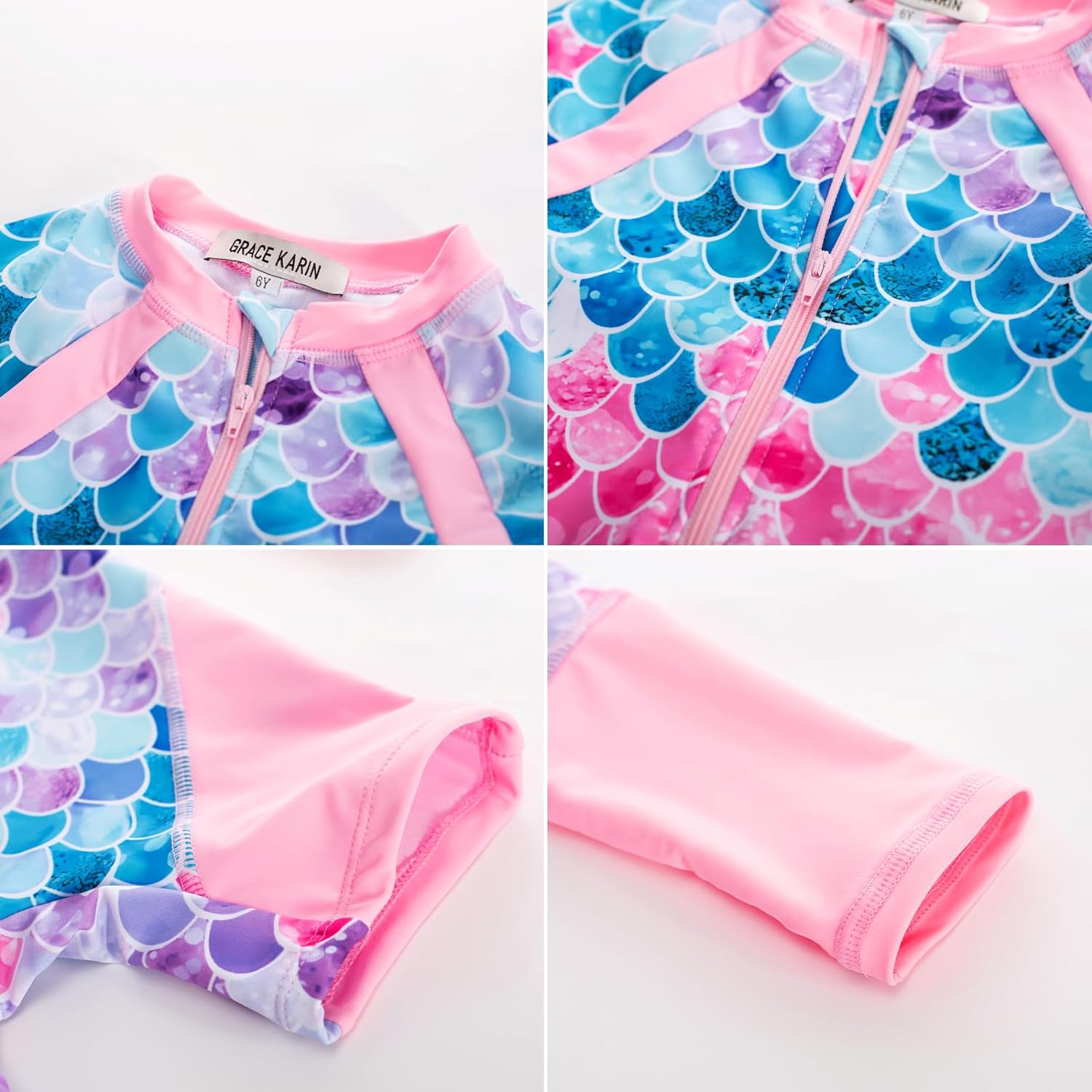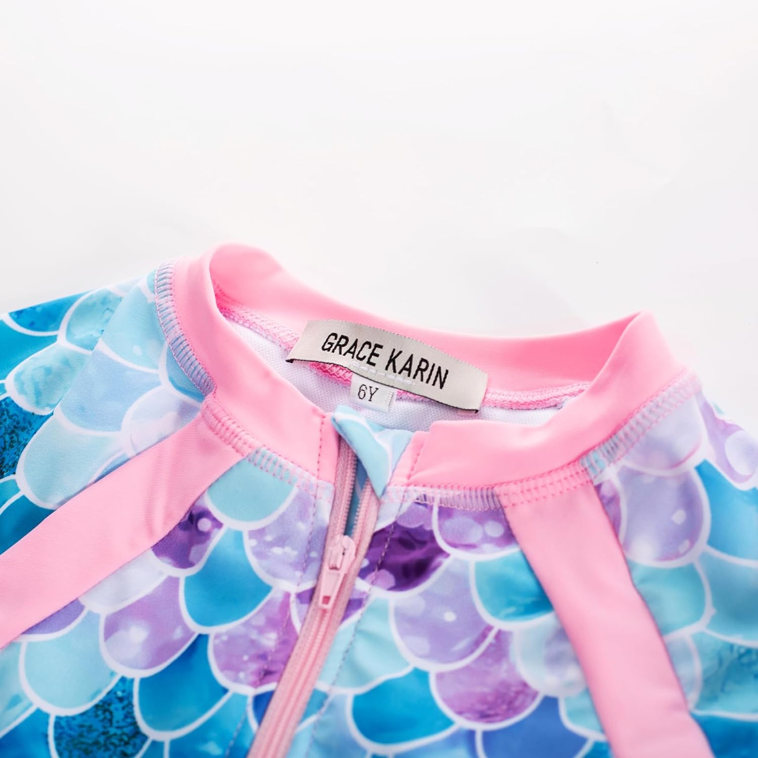 GRACE KARIN Girls Swimsuit Girls One Piece Long Sleeve Rash Guard 512 Years with ZipColorful Mermaid