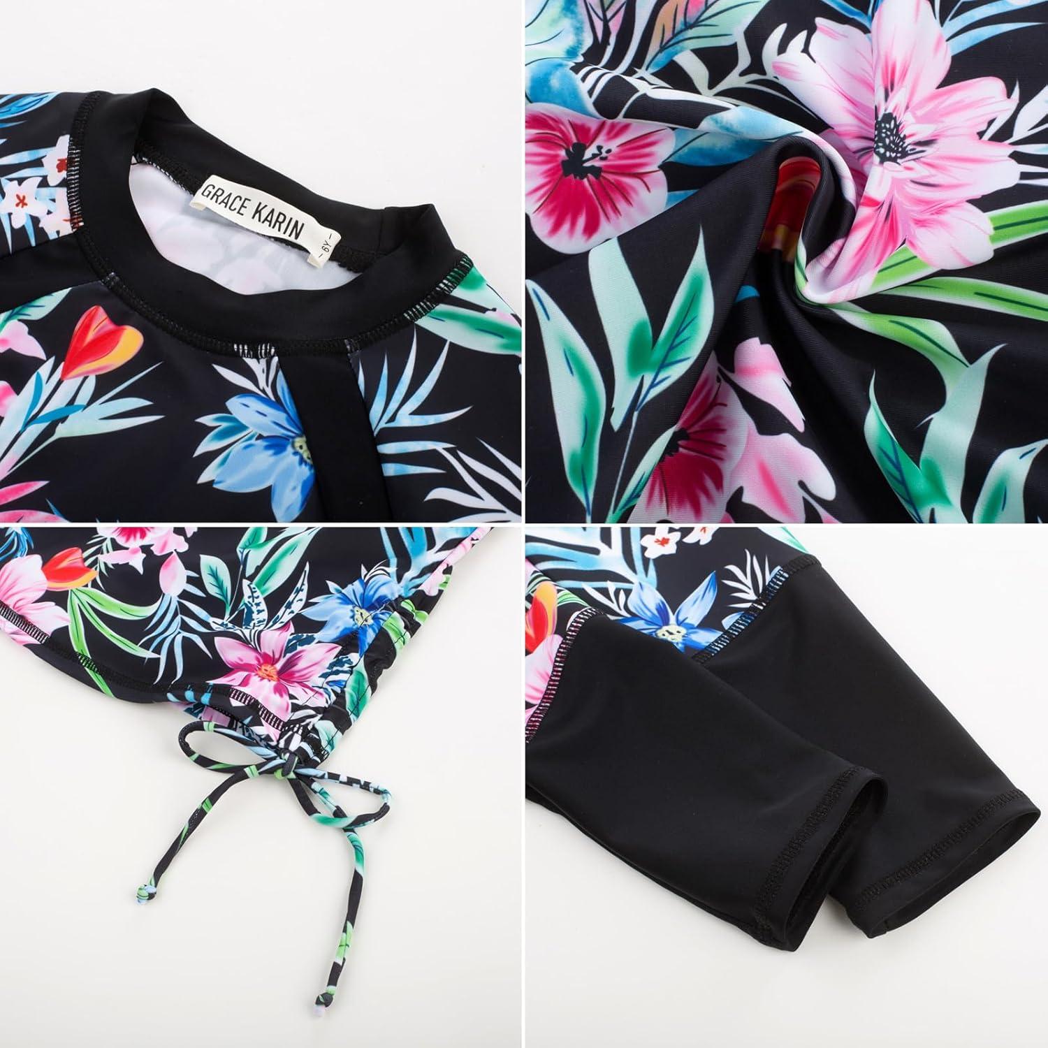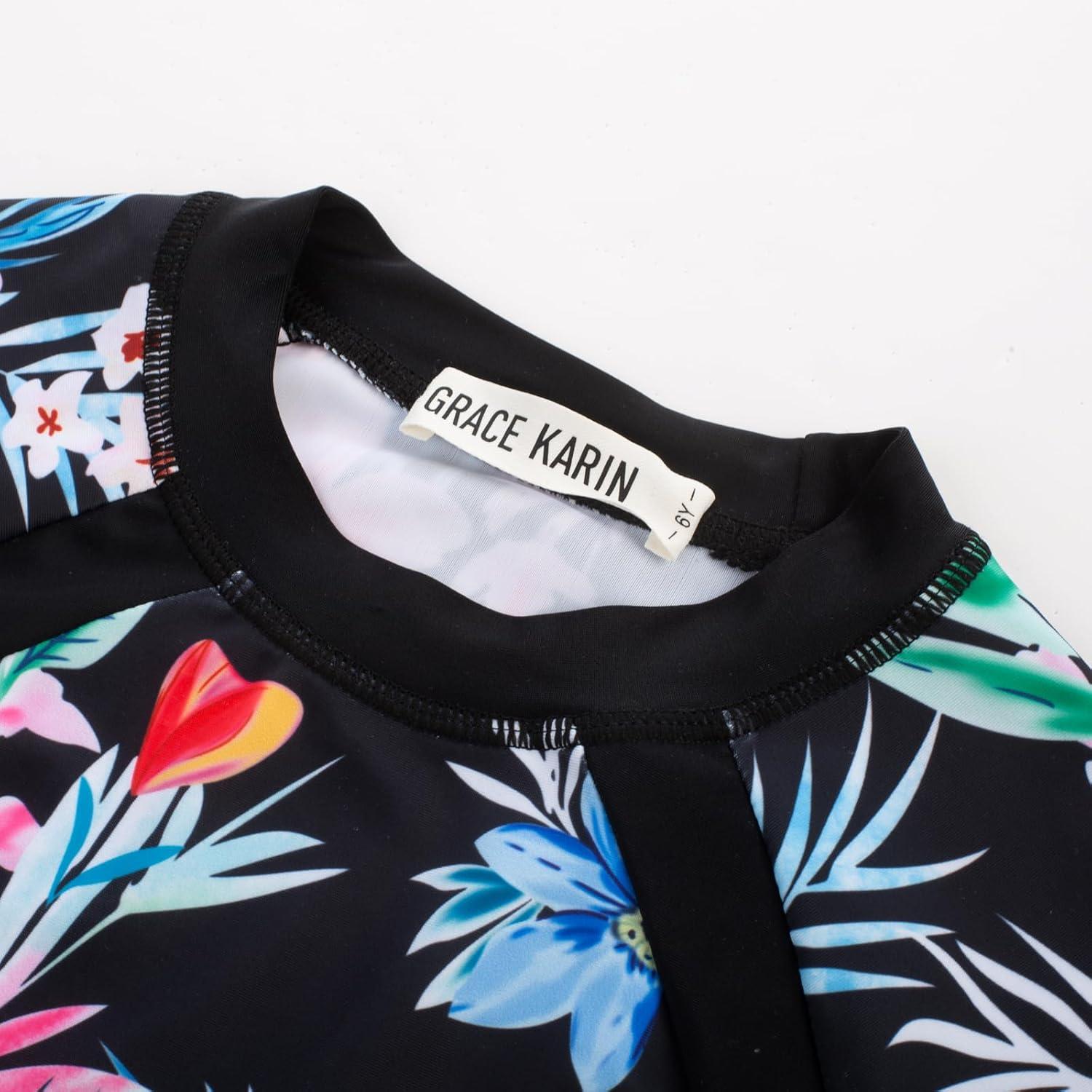 GRACE KARIN Girls Swimsuit Long Sleeve Rashguard Set 2-Piece Bathing Suit 6-12Y(Purple Floral)