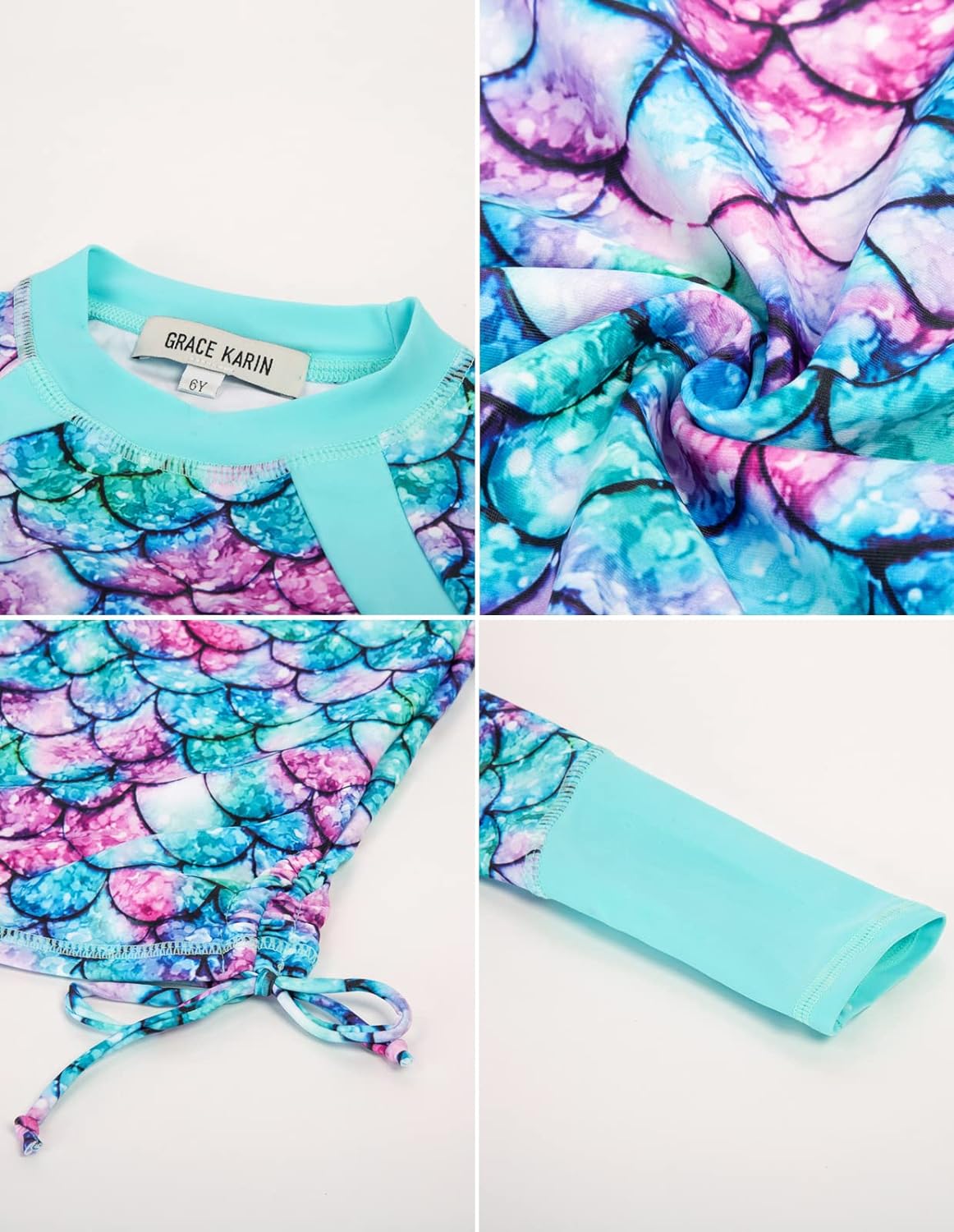 GRACE KARIN Girls Swimsuit Long Sleeve Rashguard Set 2Piece Bathing Suit 612YMermaid