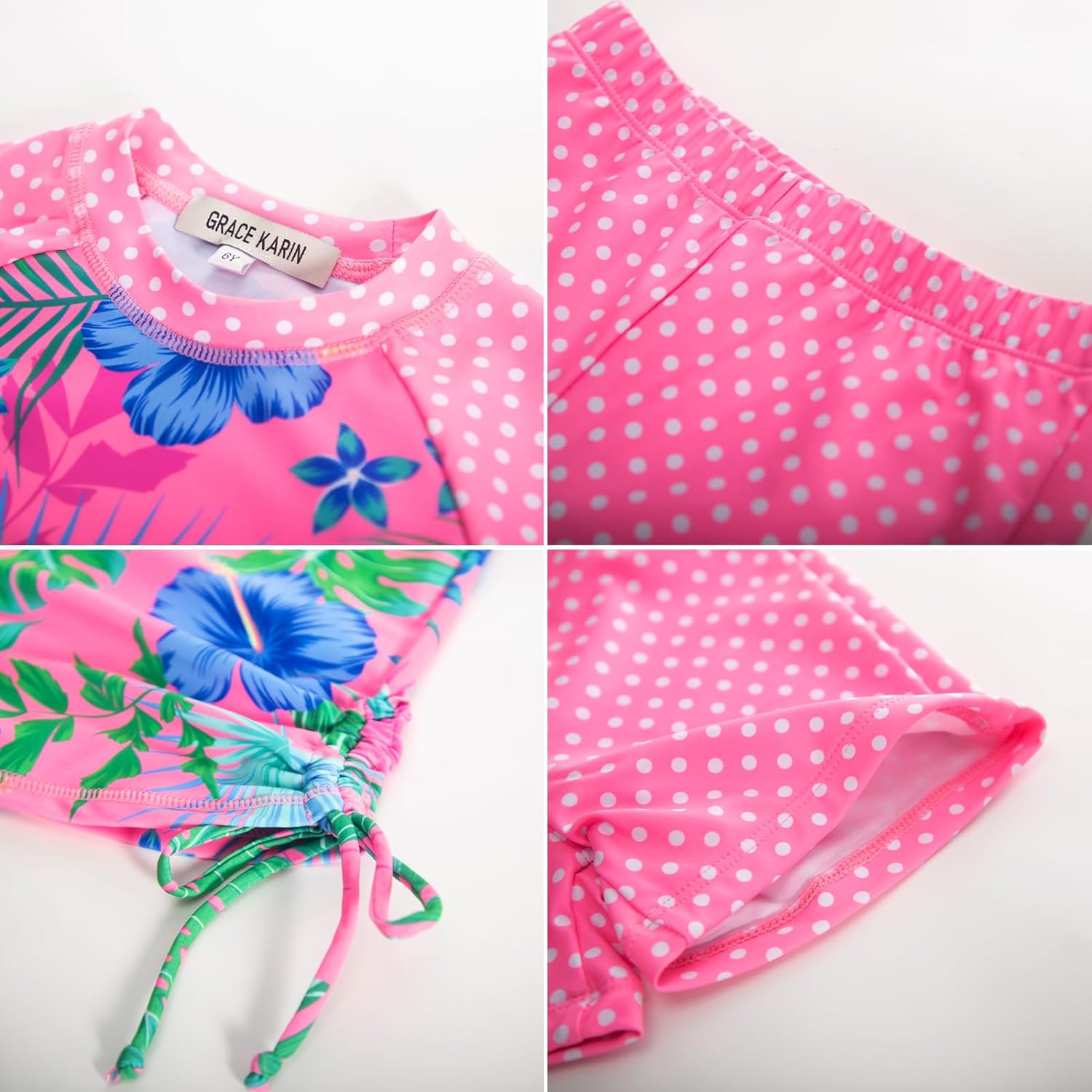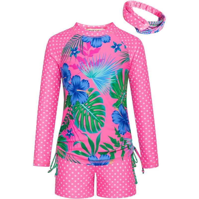 GRACE KARIN Girls Swimsuit Long Sleeve Rashguard Set 2Piece Bathing Suit 614YGreen Pink