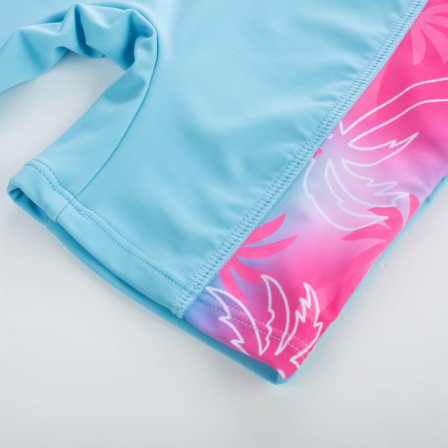 GRACE KARIN Girls Swimsuit Long Sleeve UV Protective Bathing Suit One Piece Swimwear for Kids 5-12 Years(Pink and Blue Coconut Tree)