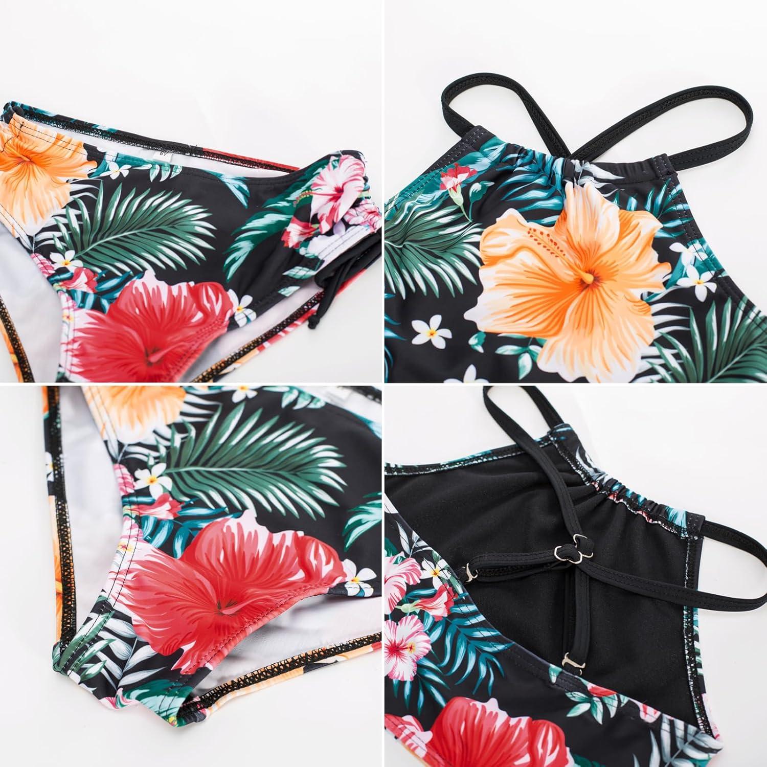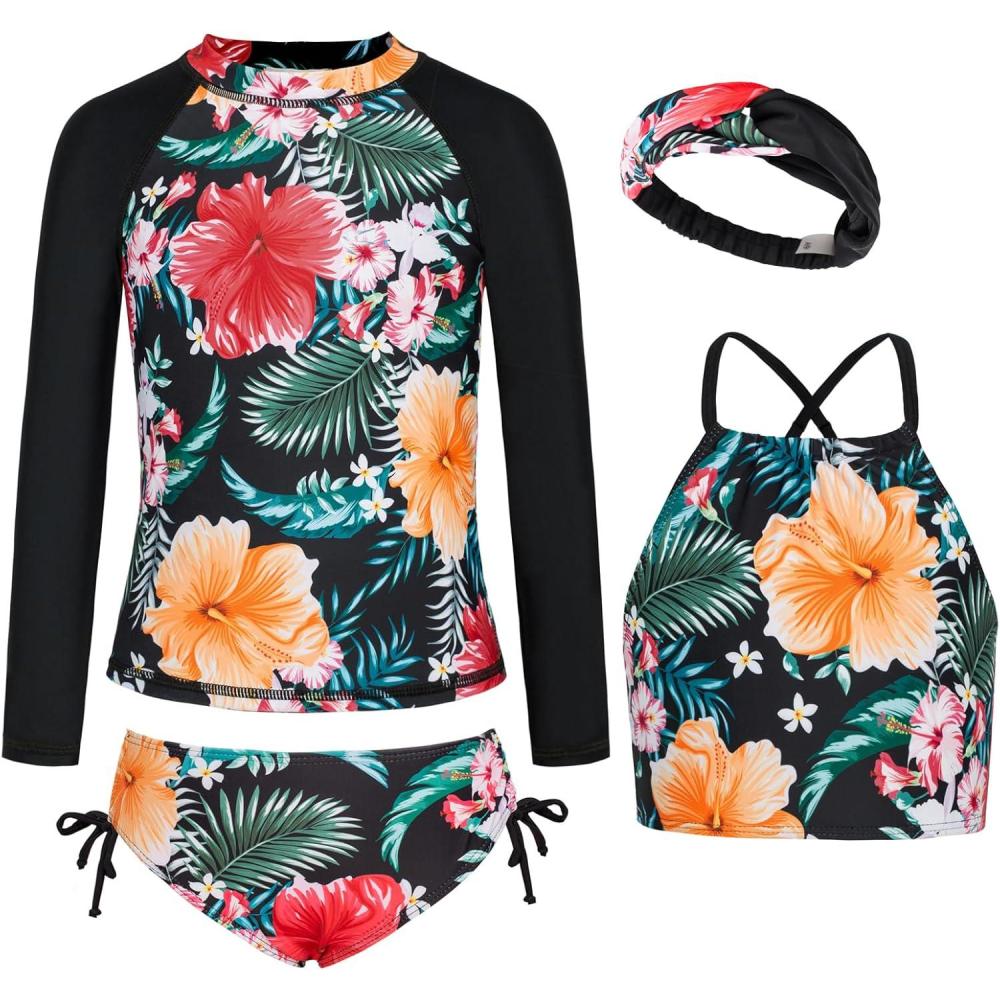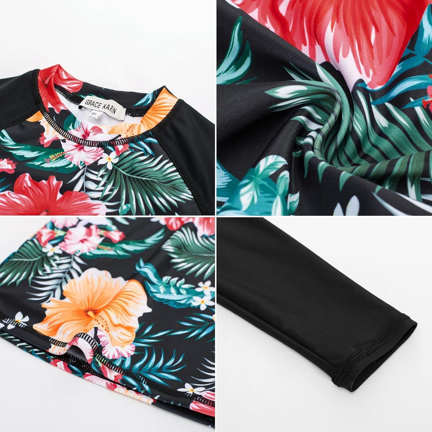 imageGRACE KARIN Girls Swimsuit Tankini Set Rash Guard Long Sleeve Swimsuit 4 Piece Bathing Suit Swimwear 514YBlack Floral