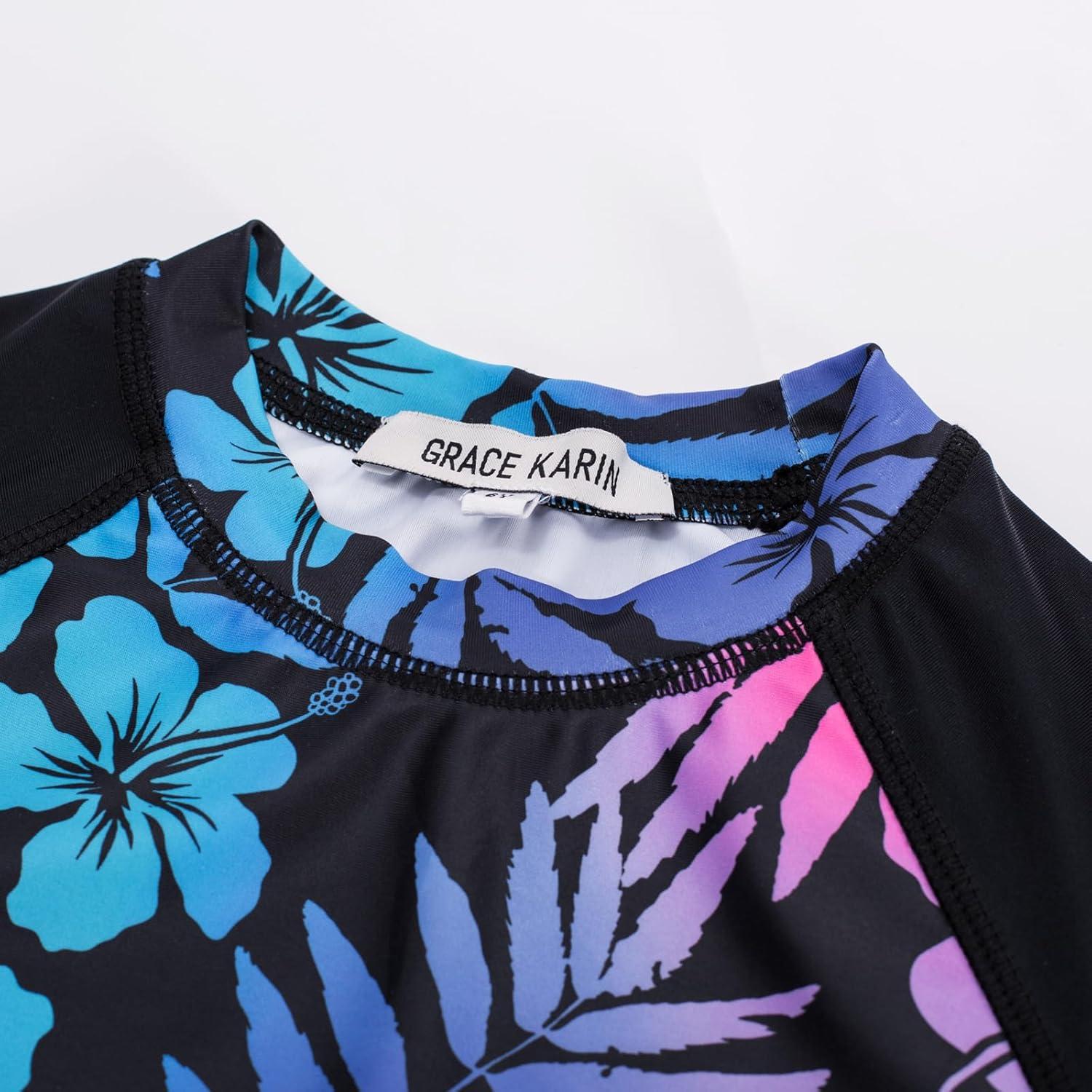 imageGRACE KARIN Girls Swimsuit Tankini Set Rash Guard Long Sleeve Swimsuit 4 Piece Bathing Suit Swimwear 514YBlack Floral