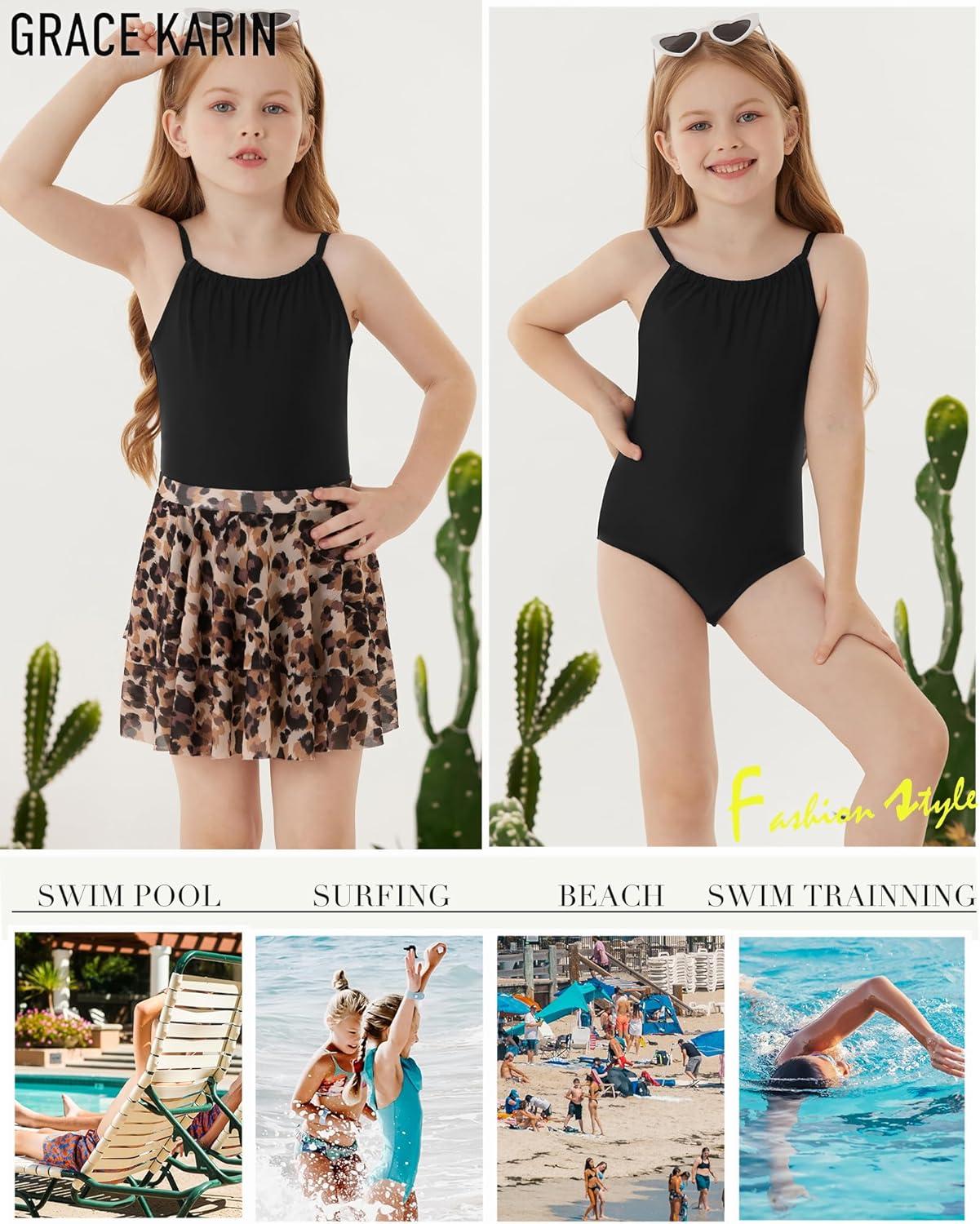 imageGRACE KARIN Girls Swimsuit with Skirt One Piece Bathing Suit Swimwear 614YBlack
