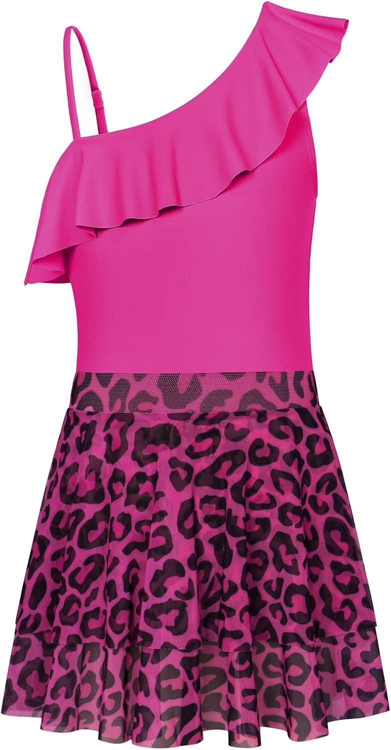 GRACE KARIN Girls Swimsuit with Skirt One Piece Bathing Suit Swimwear 6-14Y(Hot Pink Leopard)