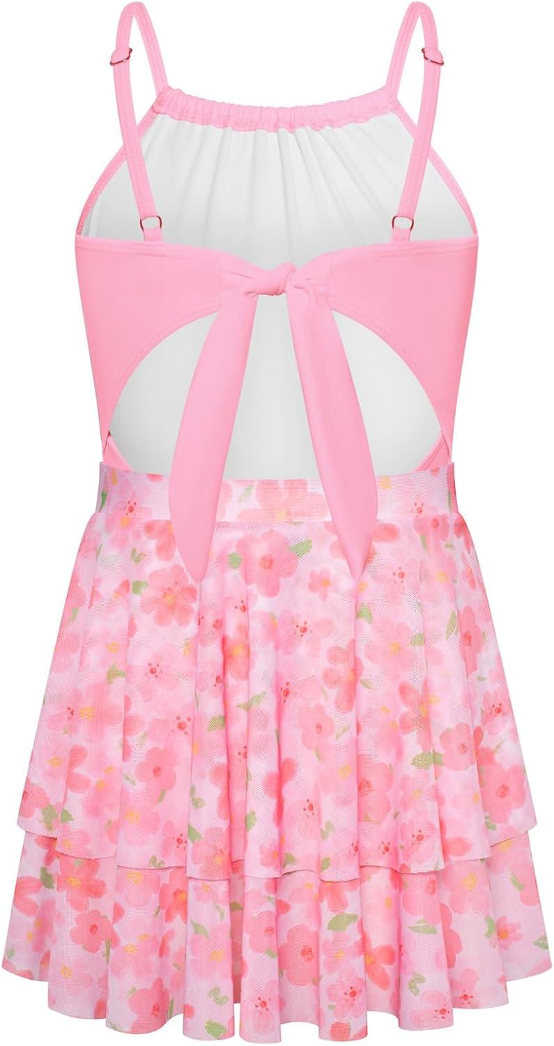 GRACE KARIN Girls Swimsuit with Skirt One Piece Bathing Suit Swimwear 6-14Y(Light Pink)