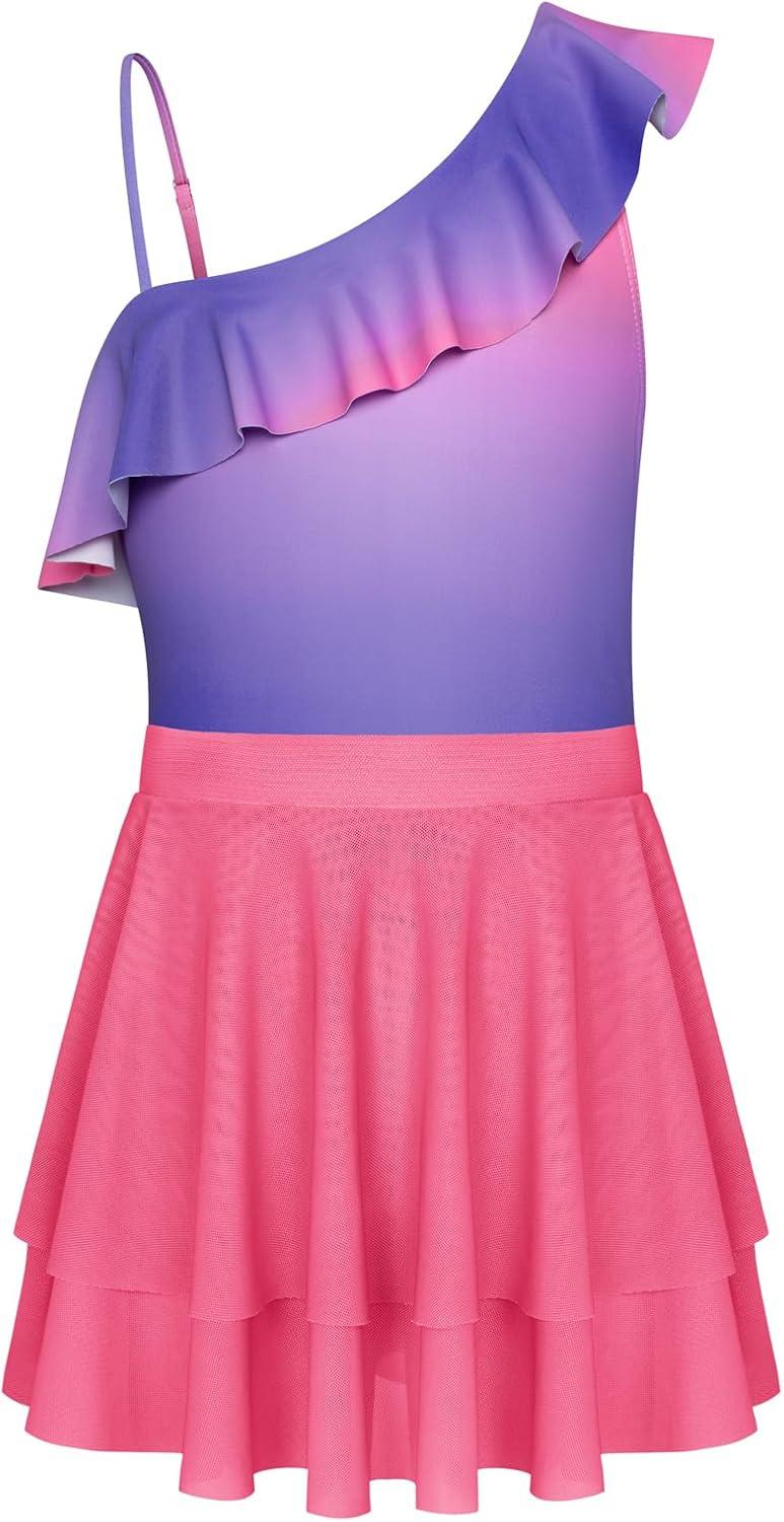 GRACE KARIN Girls Swimsuit with Skirt One Piece Bathing Suit Swimwear 6-14Y(Rose Purple Gradient)