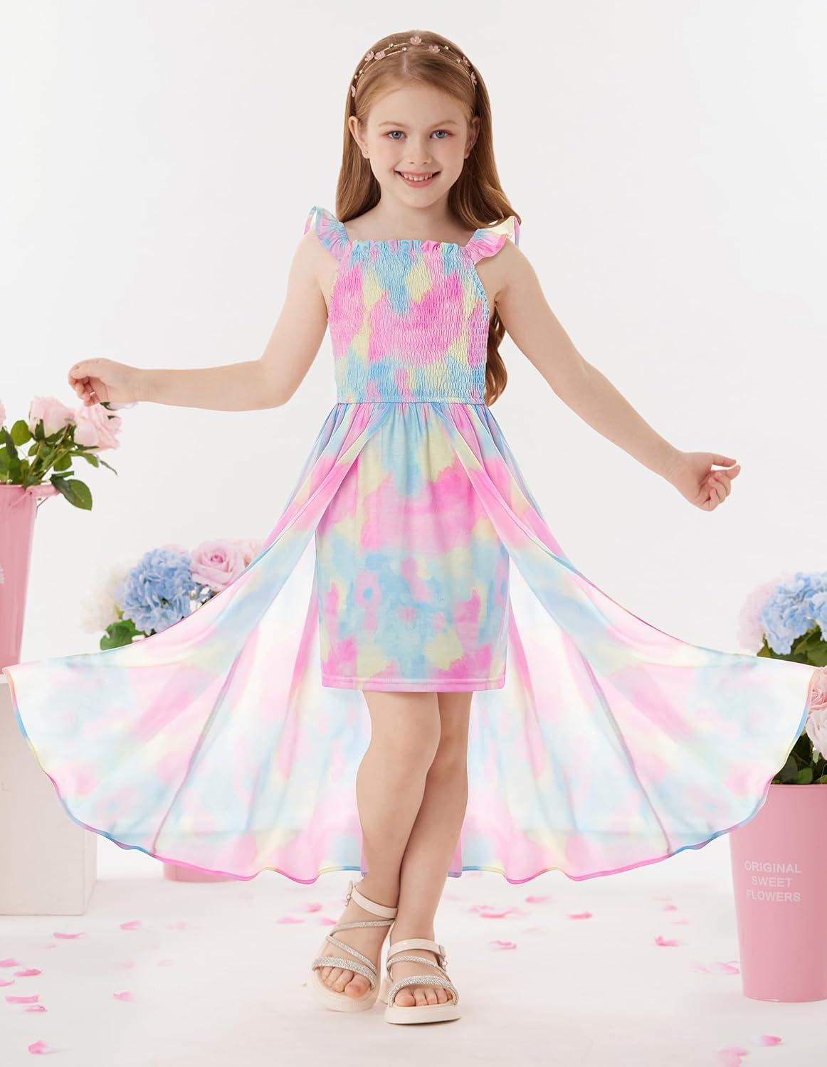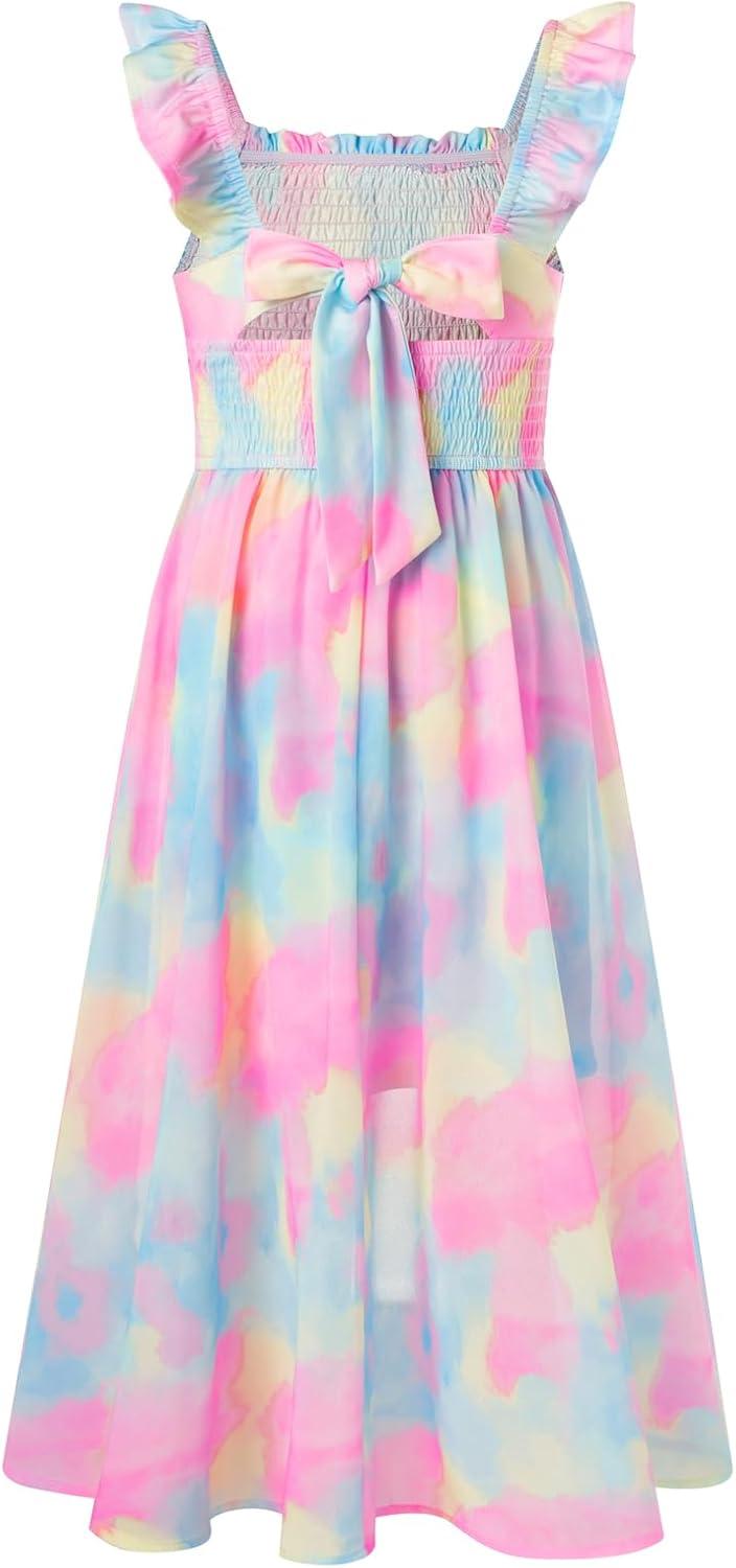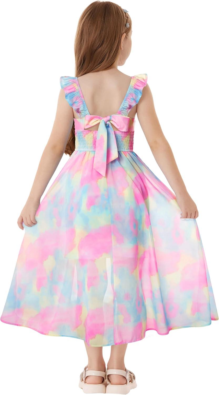 GRACE KARIN Girls Tie Back Floral Dress Flutter Sleeves Casual Spring Summer Maxi Dresses for 5-14Y(Blue Pink)