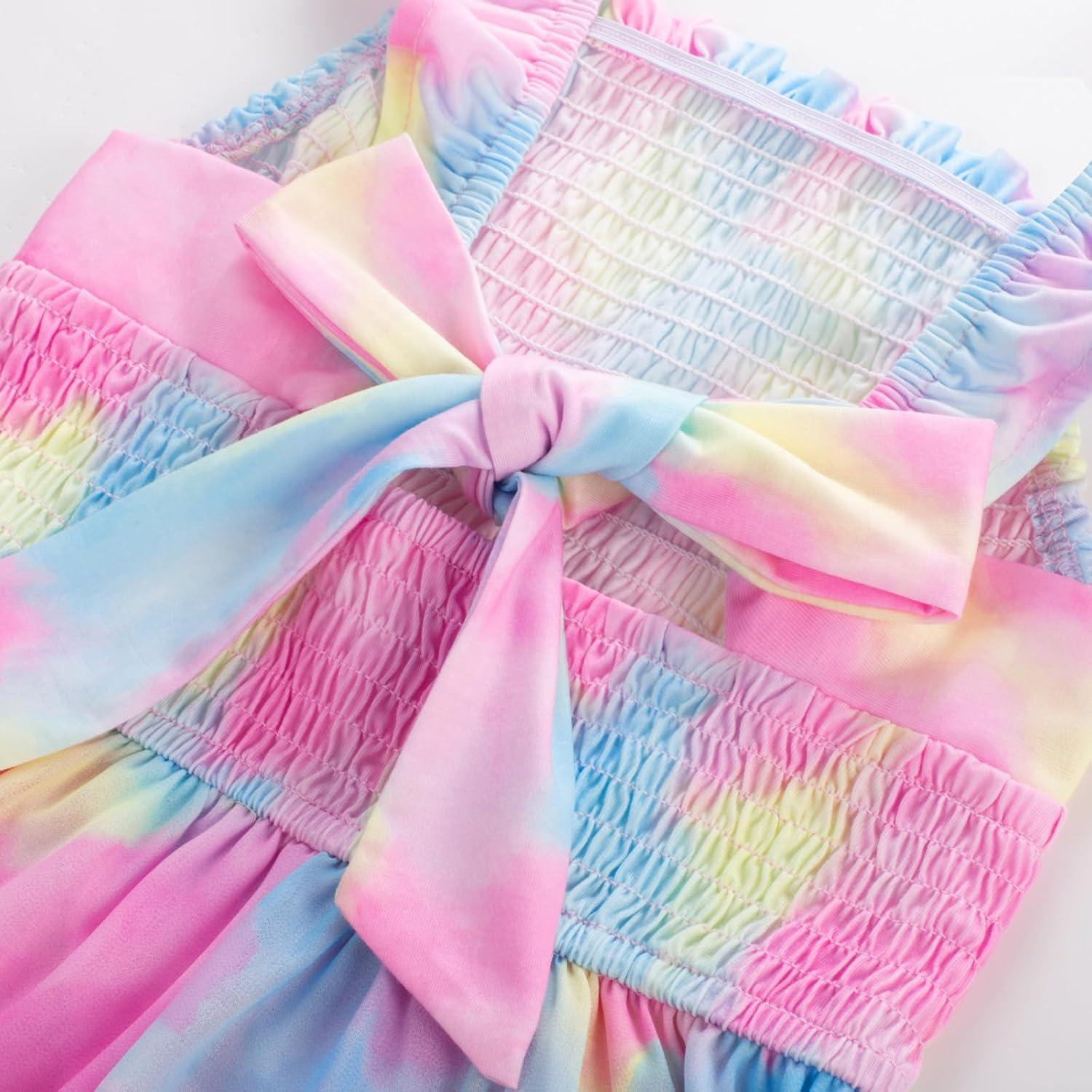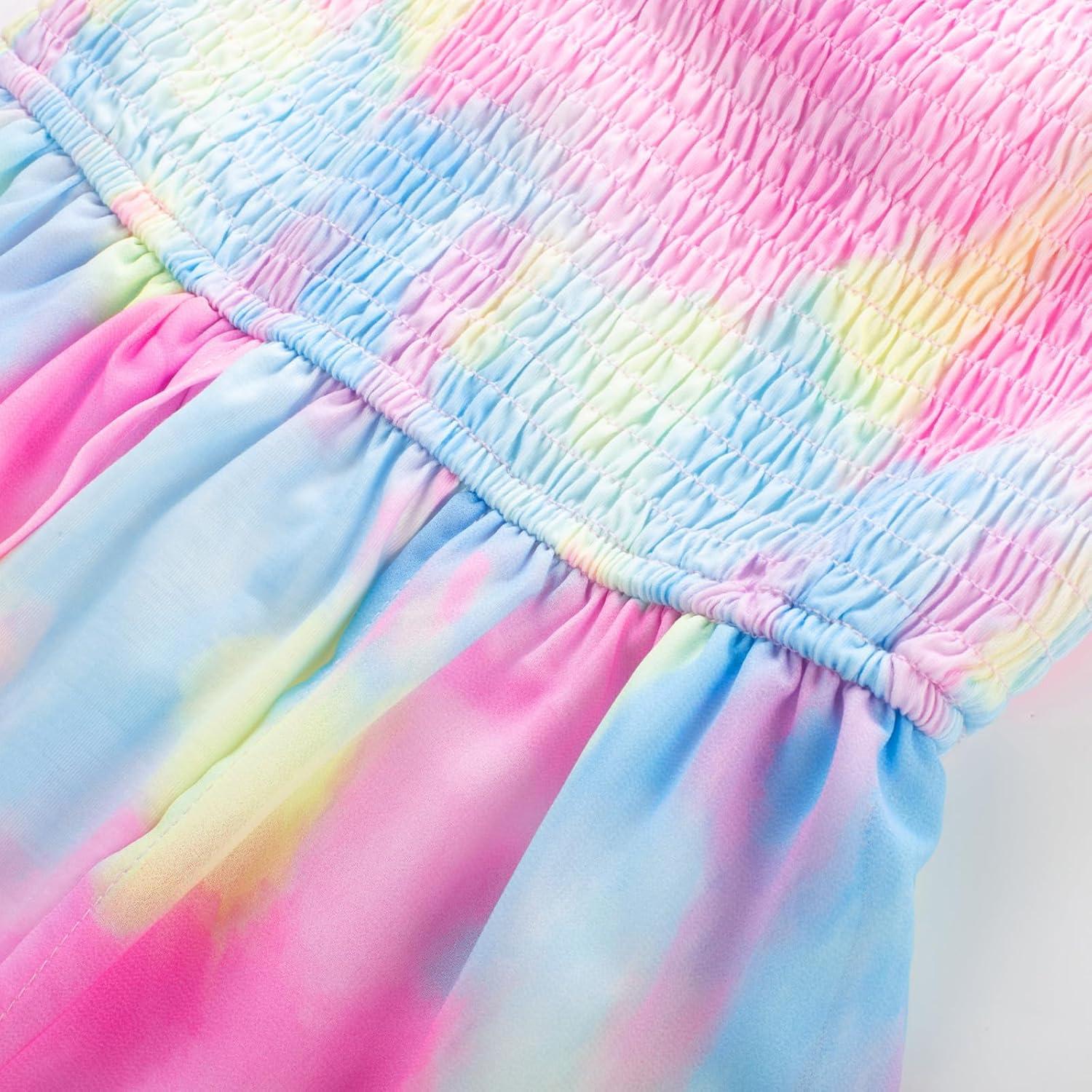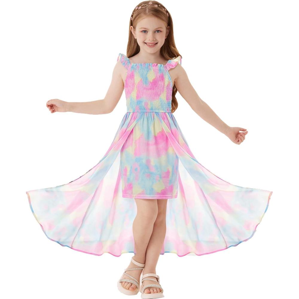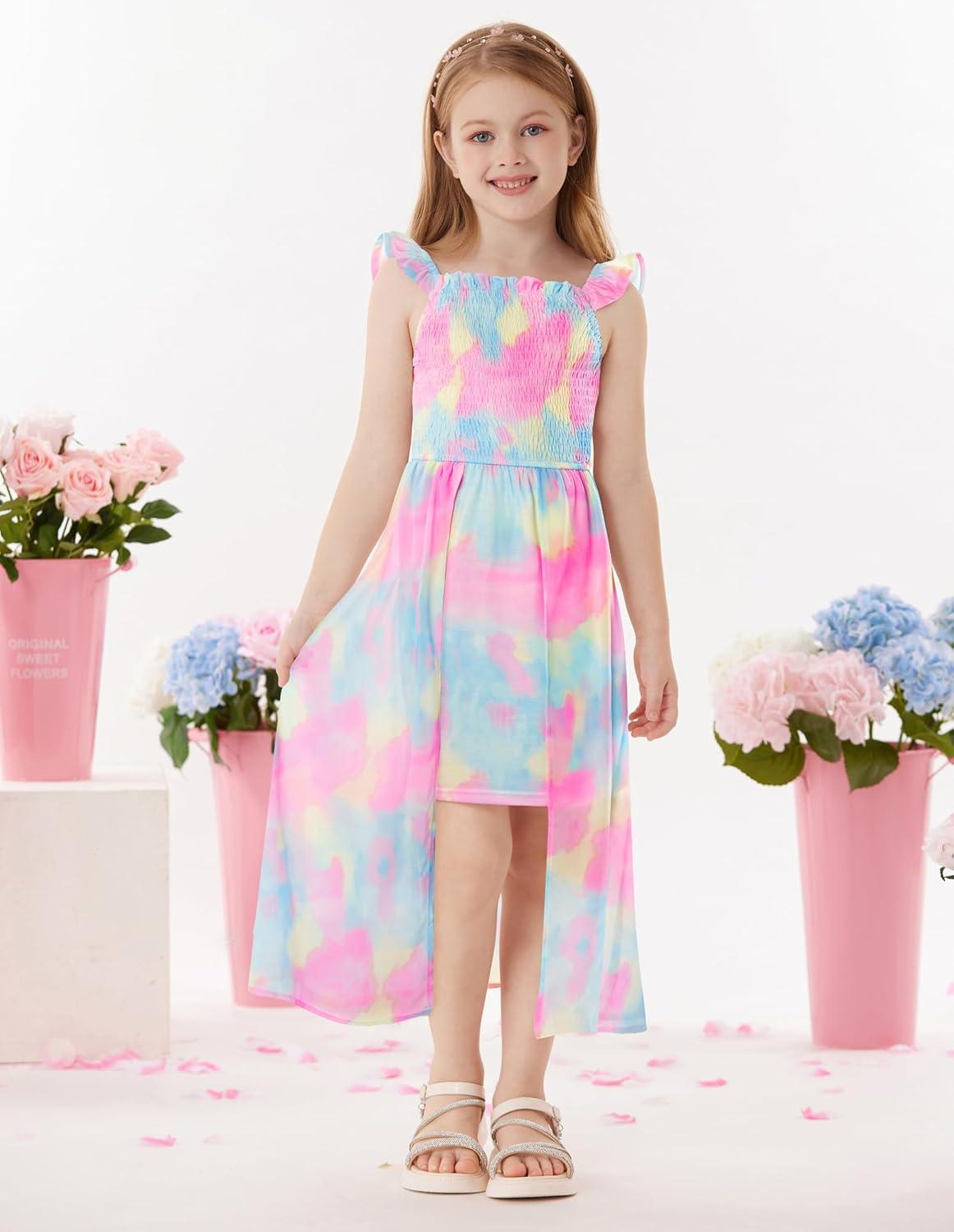 GRACE KARIN Girls Tie Back Floral Dress Flutter Sleeves Casual Spring Summer Maxi Dresses for 5-14Y(Blue Pink)