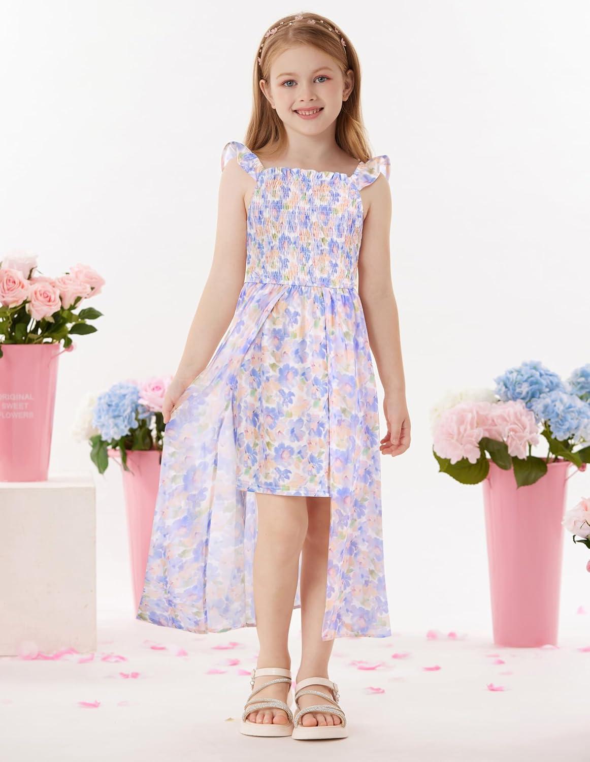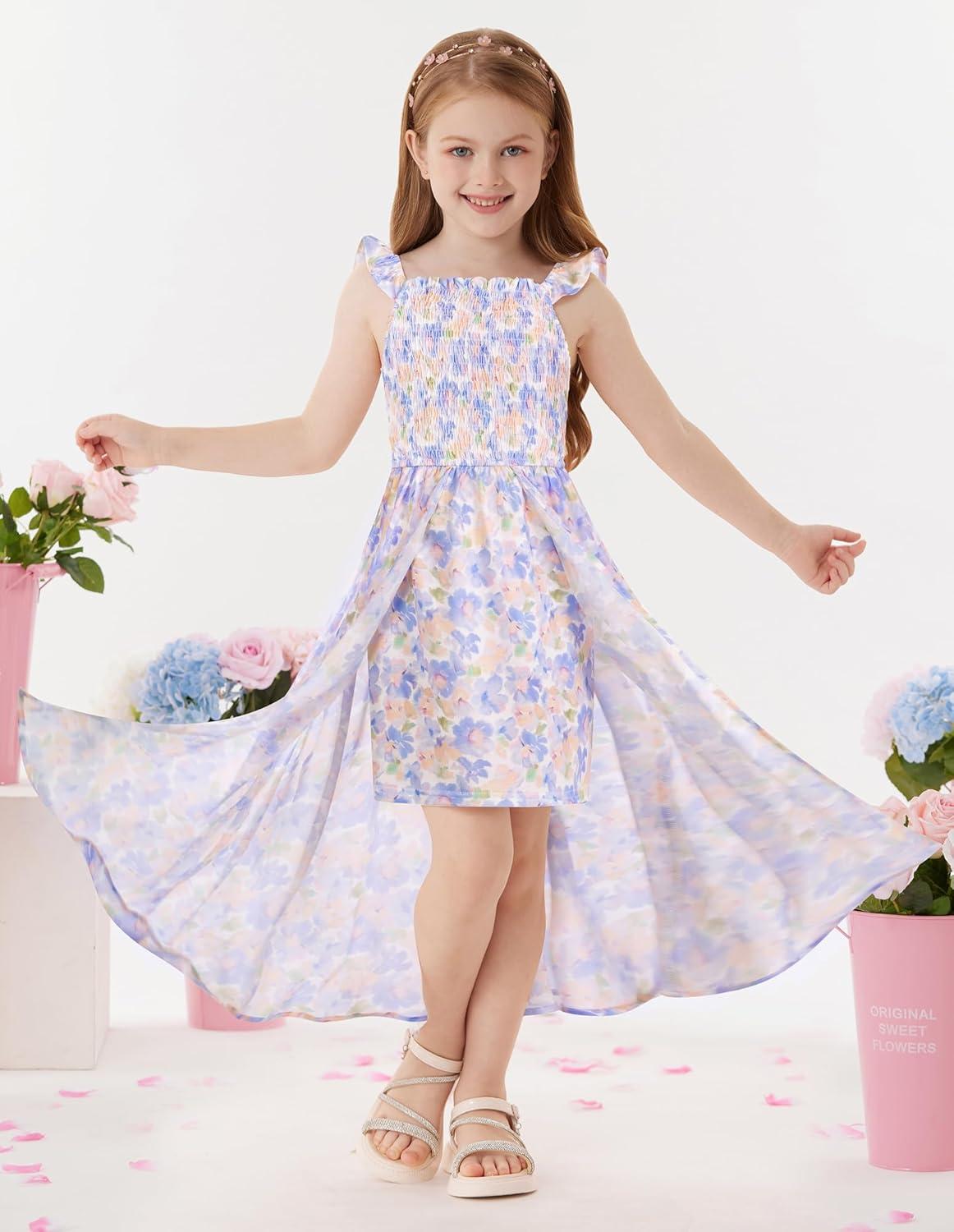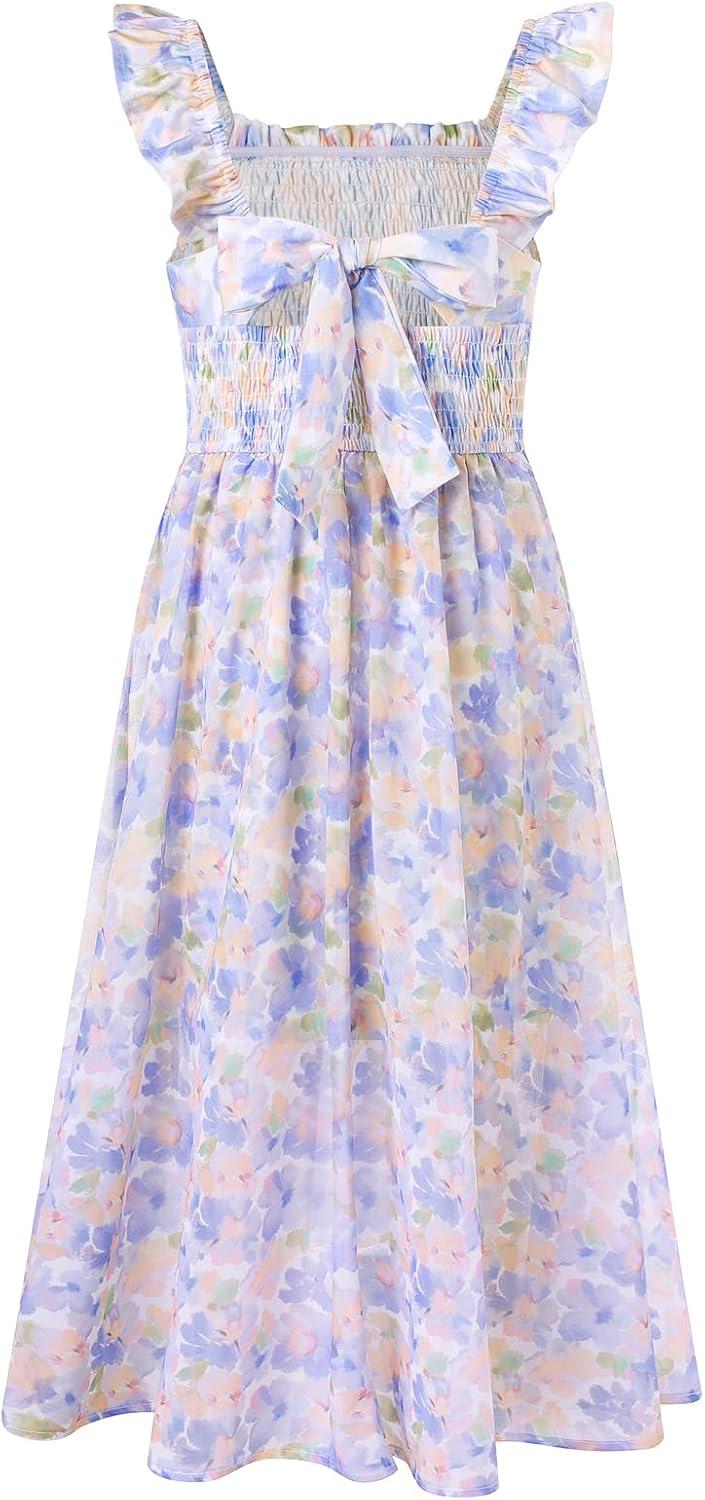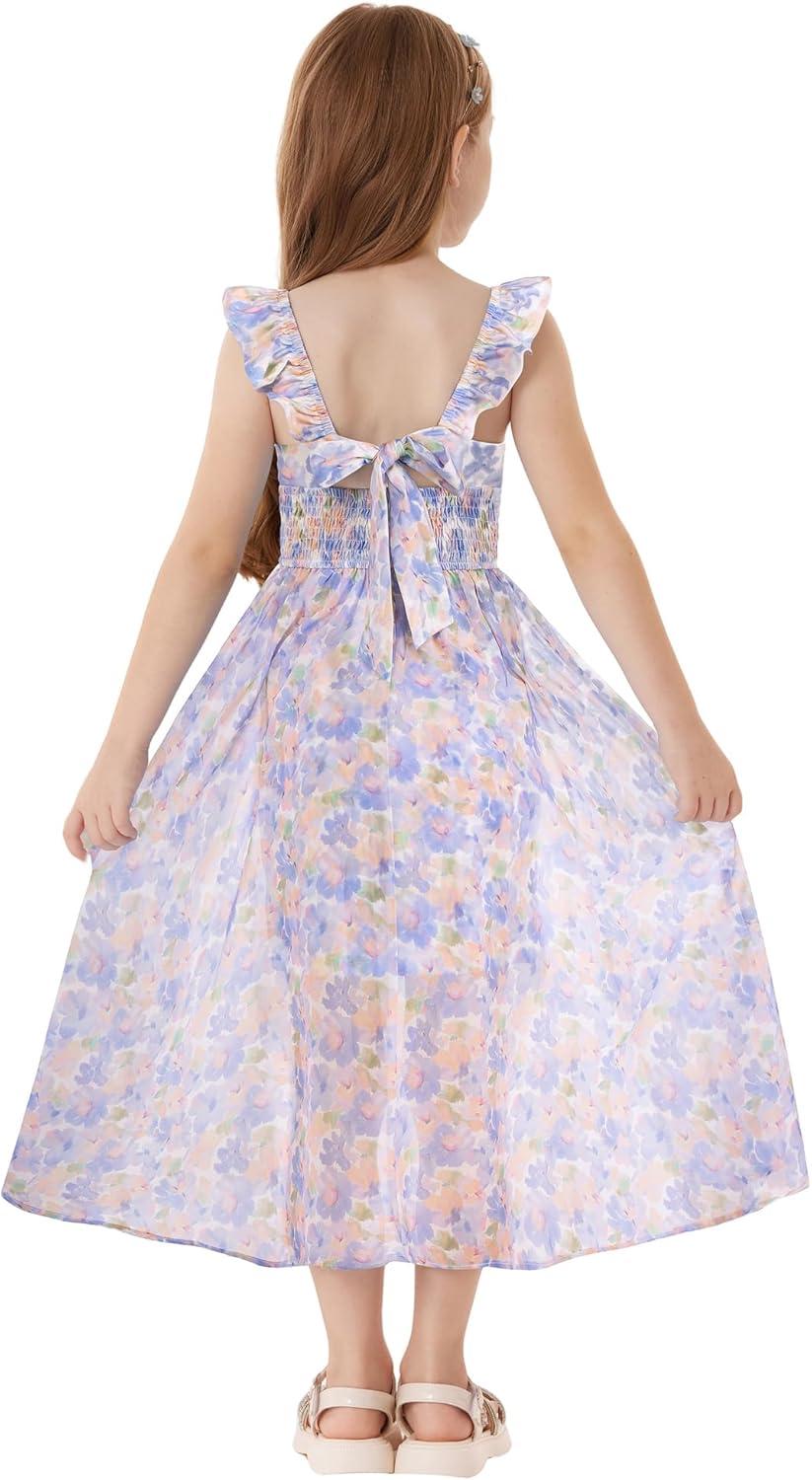 GRACE KARIN Girls Tie Back Floral Dress Flutter Sleeves Casual Spring Summer Maxi Dresses for 5-14Y(Blue Purple Floral)