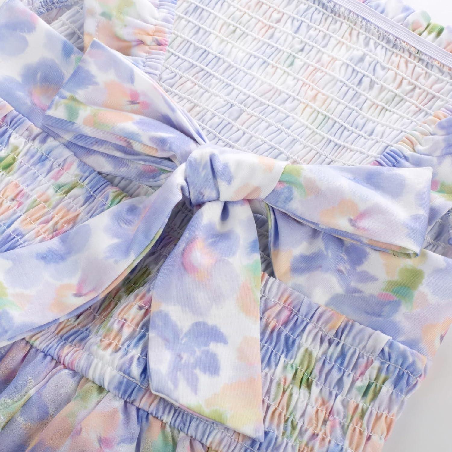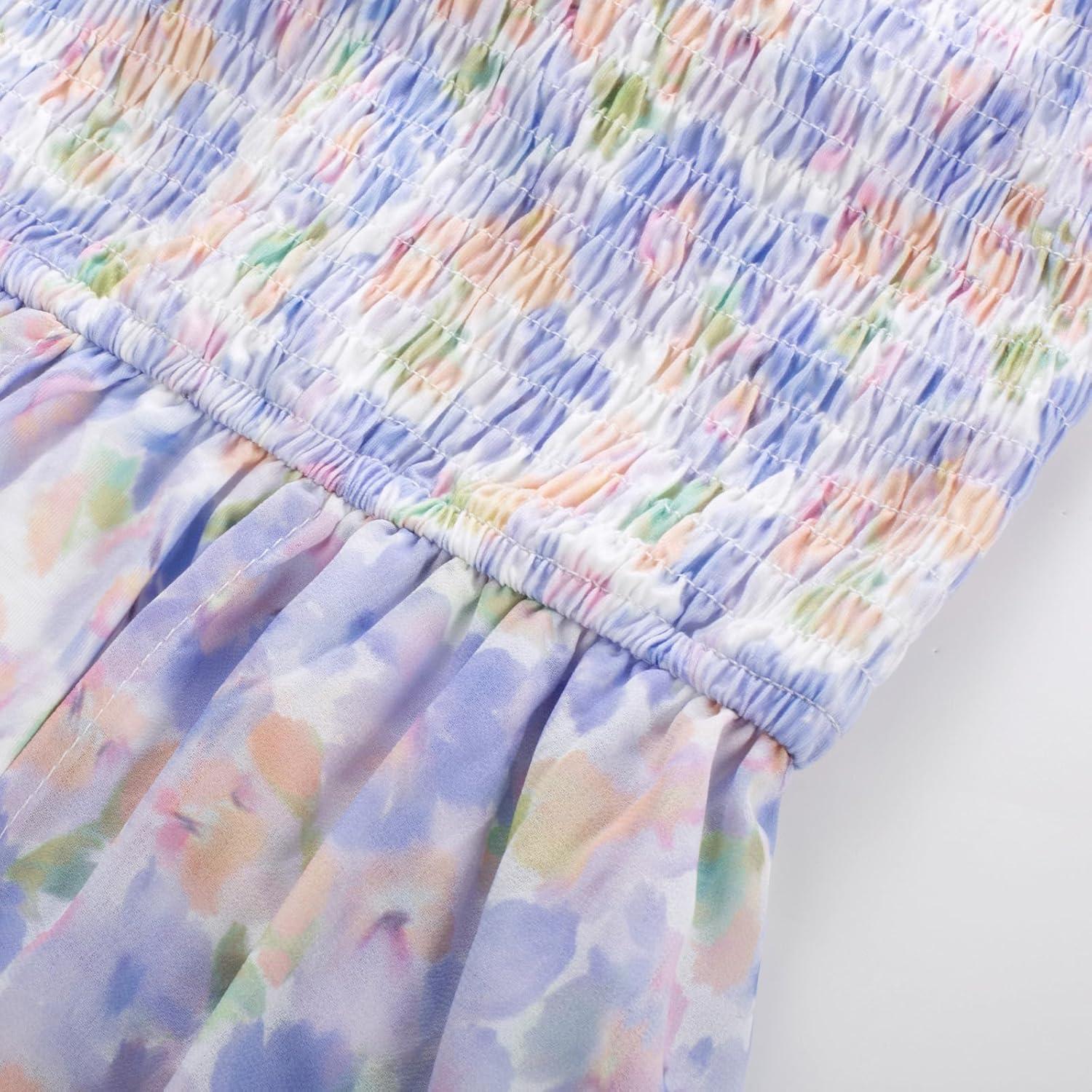 imageGRACE KARIN Girls Tie Back Floral Dress Flutter Sleeves Casual Spring Summer Maxi Dresses for 514YBlue Purple Floral