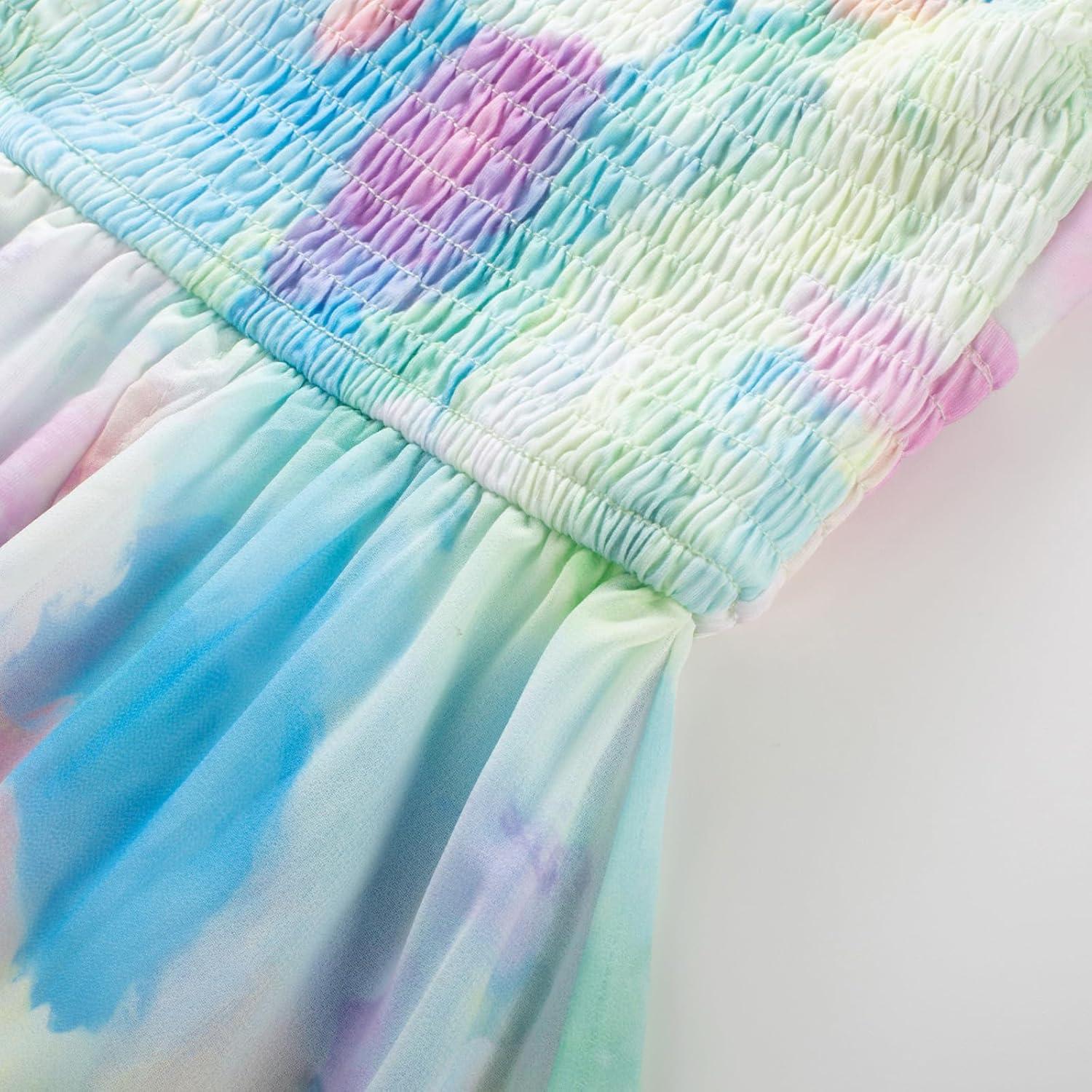 imageGRACE KARIN Girls Tie Back Floral Dress Flutter Sleeves Casual Spring Summer Maxi Dresses for 514YGreen Tiedye