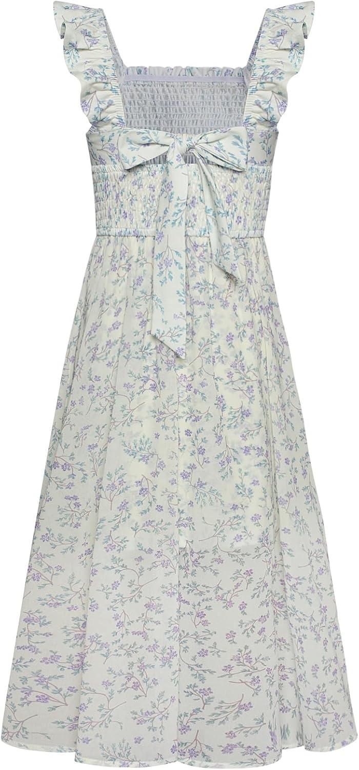 GRACE KARIN Girls Tie Back Floral Dress Flutter Sleeves Casual Spring Summer Maxi Dresses for 5-14Y(Blue Floral)