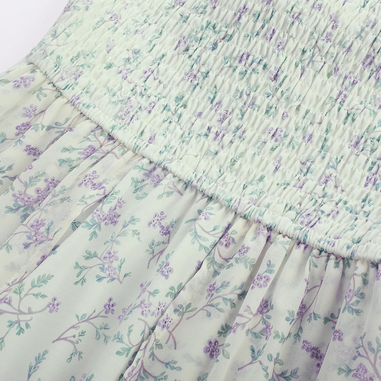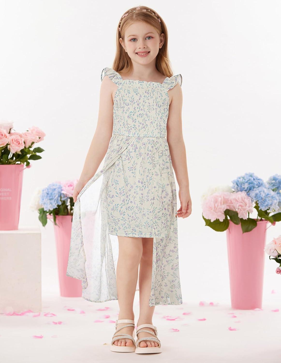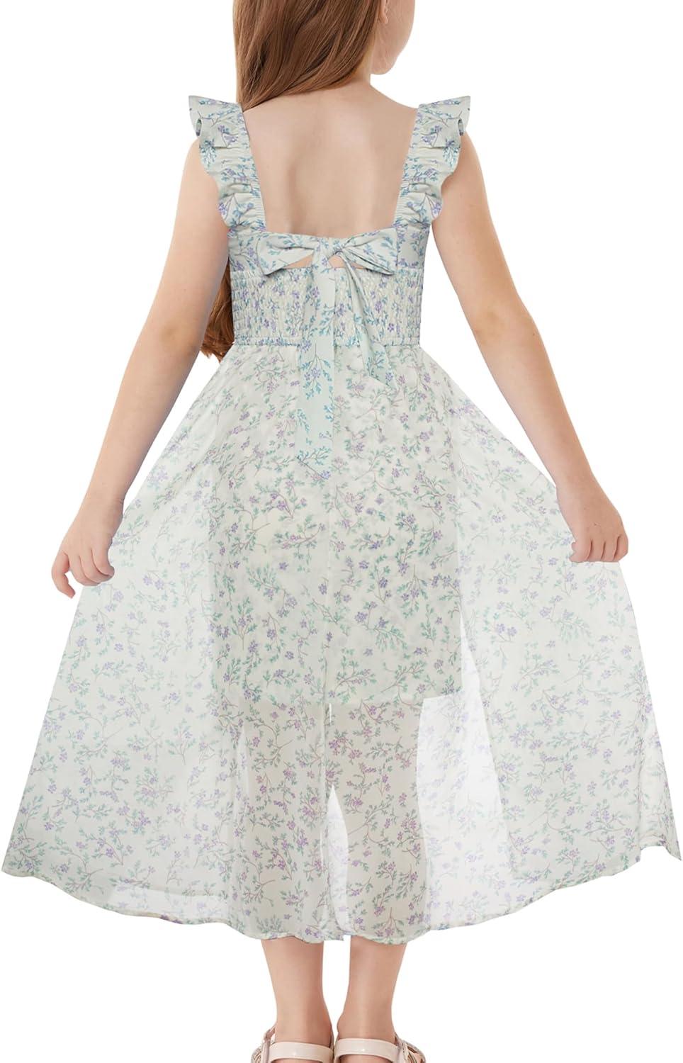 GRACE KARIN Girls Tie Back Floral Dress Flutter Sleeves Casual Spring Summer Maxi Dresses for 5-14Y(Light Green Floral)