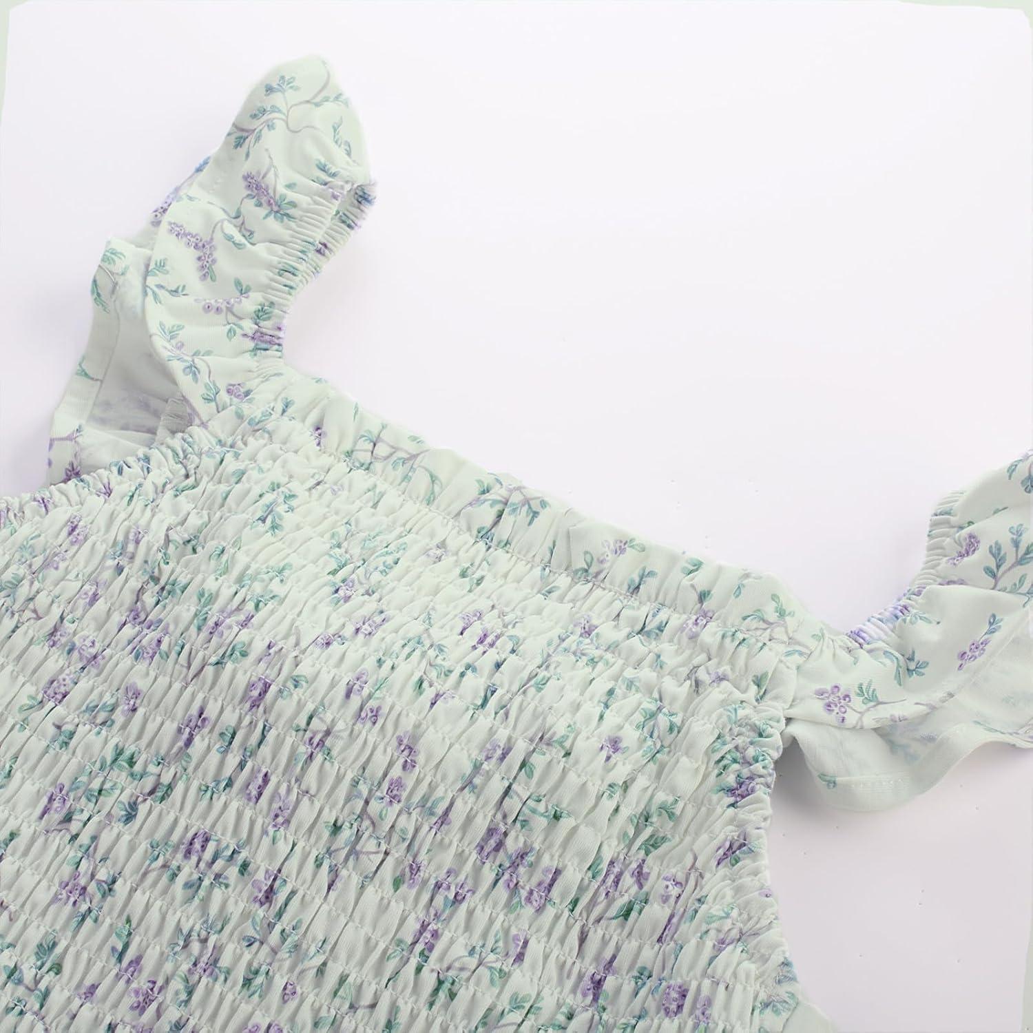 imageGRACE KARIN Girls Tie Back Floral Dress Flutter Sleeves Casual Spring Summer Maxi Dresses for 514YLight Green Floral