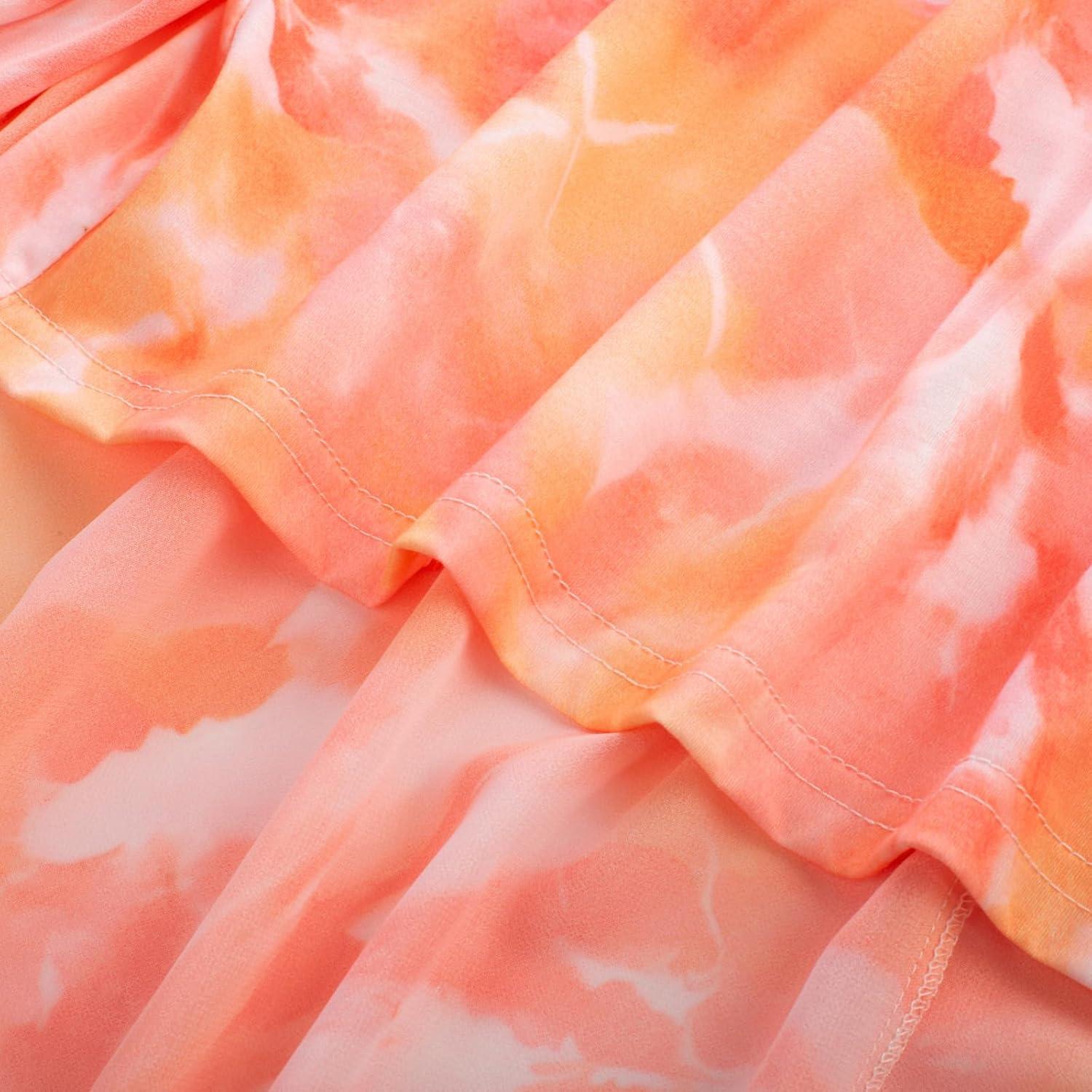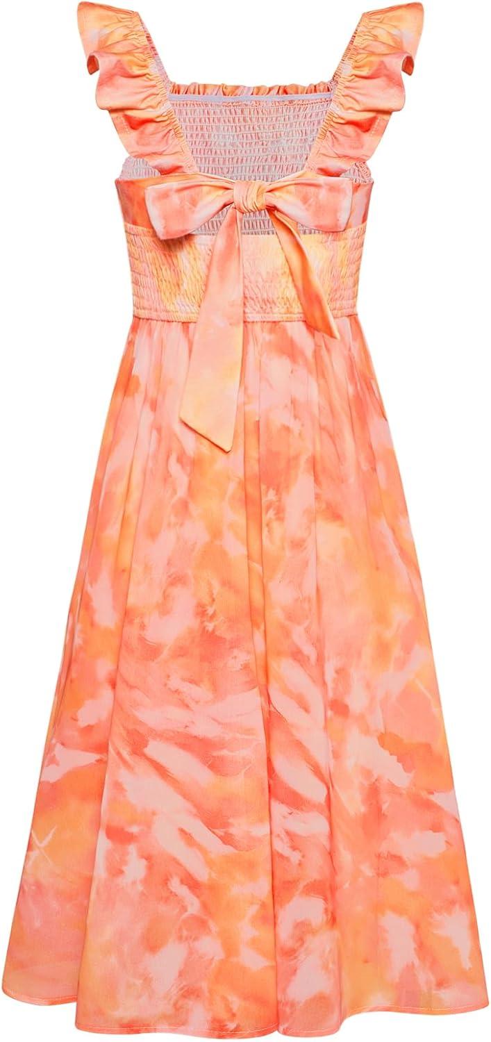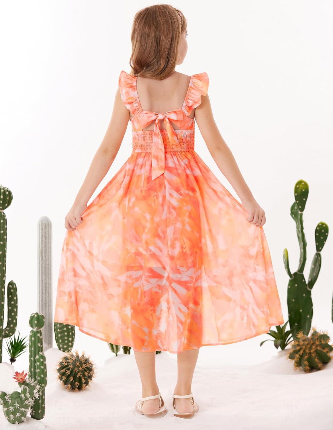 GRACE KARIN Girls Tie Back Floral Dress Flutter Sleeves Casual Spring Summer Maxi Dresses for 5-14Y(Orange Tie-dye)