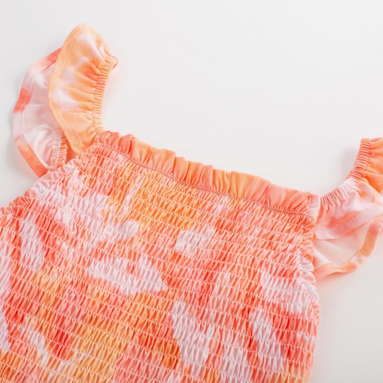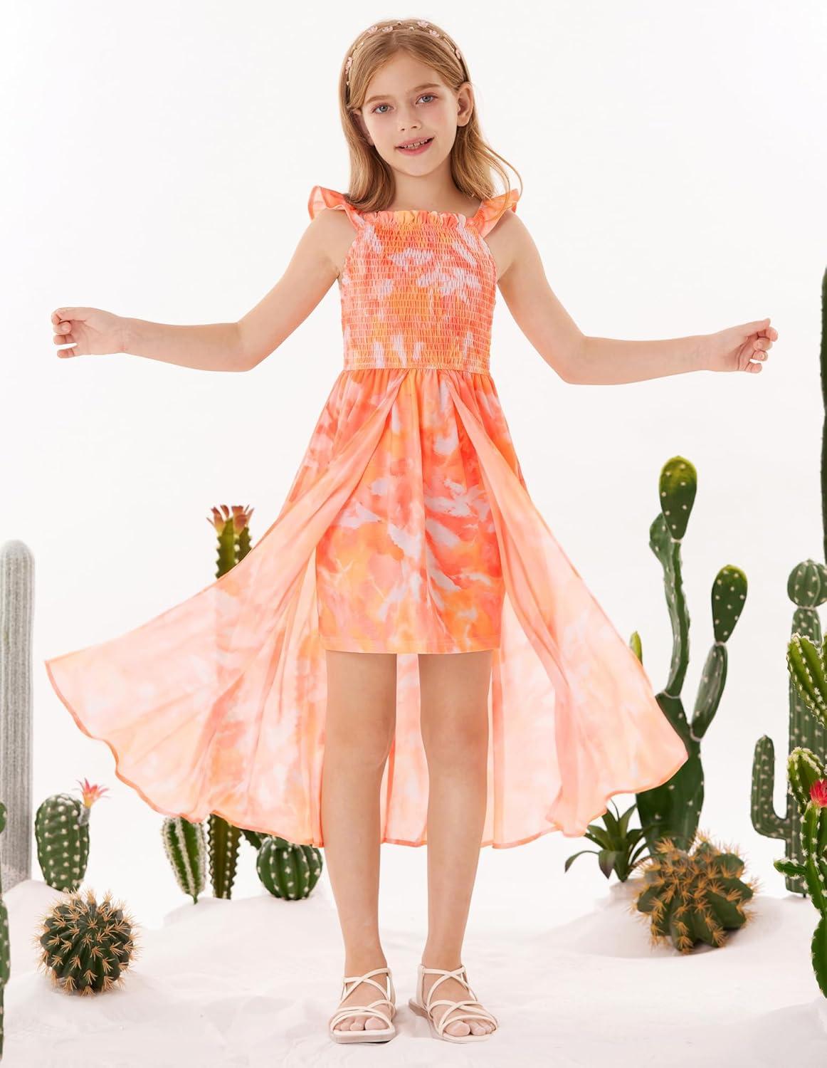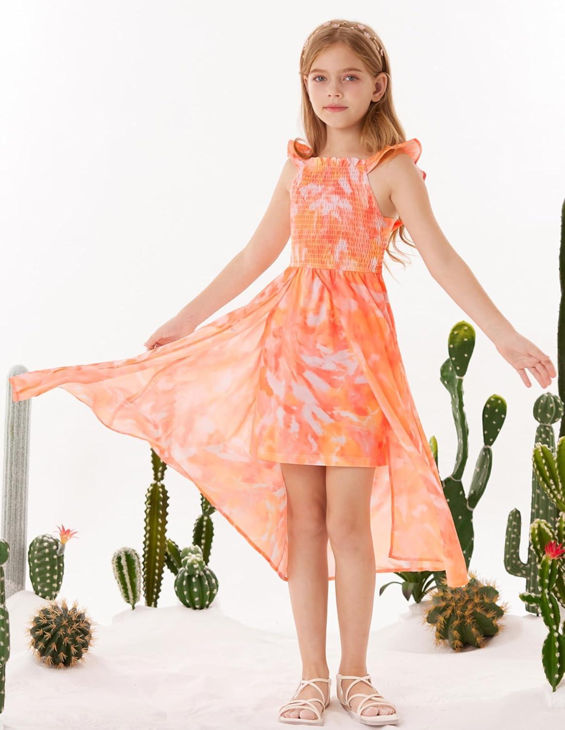 GRACE KARIN Girls Tie Back Floral Dress Flutter Sleeves Casual Spring Summer Maxi Dresses for 5-14Y(Orange Tie-dye)