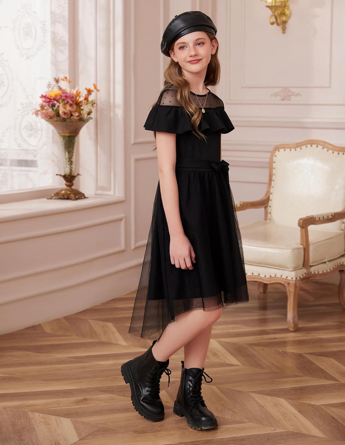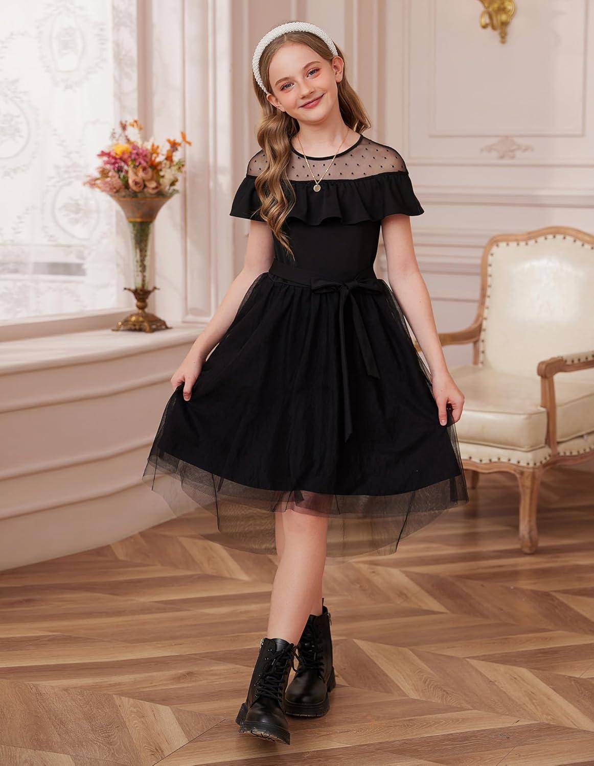 GRACE KARIN Girls Wedding Party Formal Dress Junior Bridemaid Dresses fo Teens Tulle High Low Dress Size 7-14(Black)