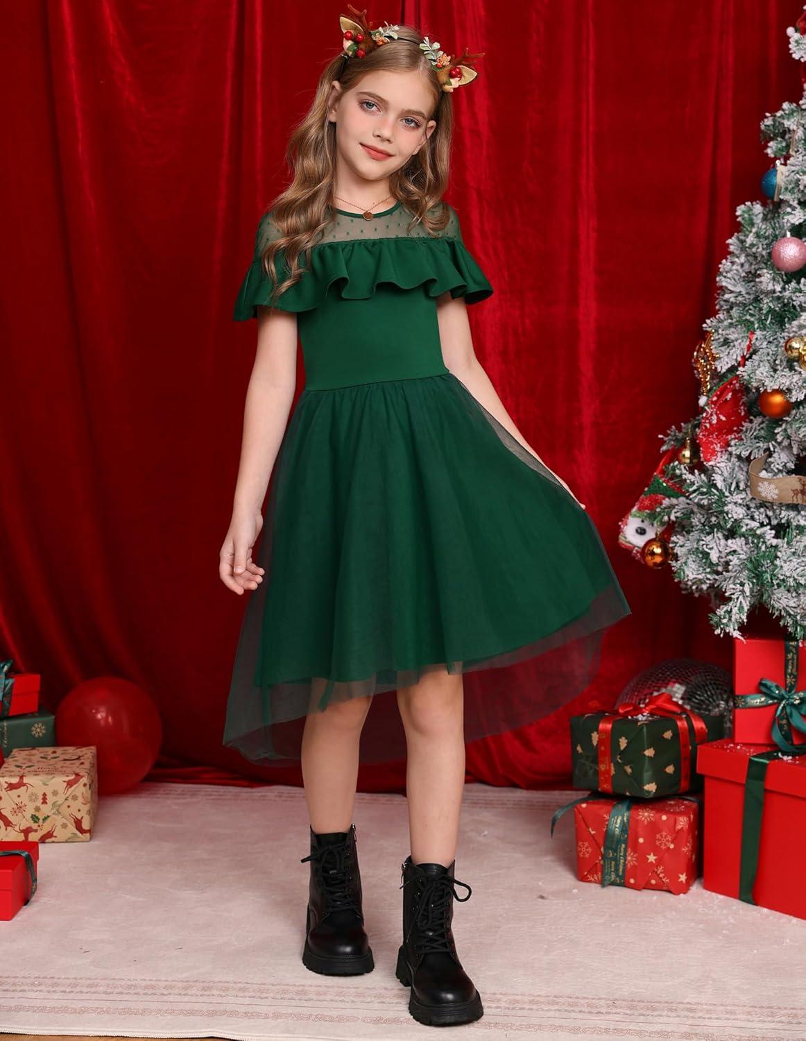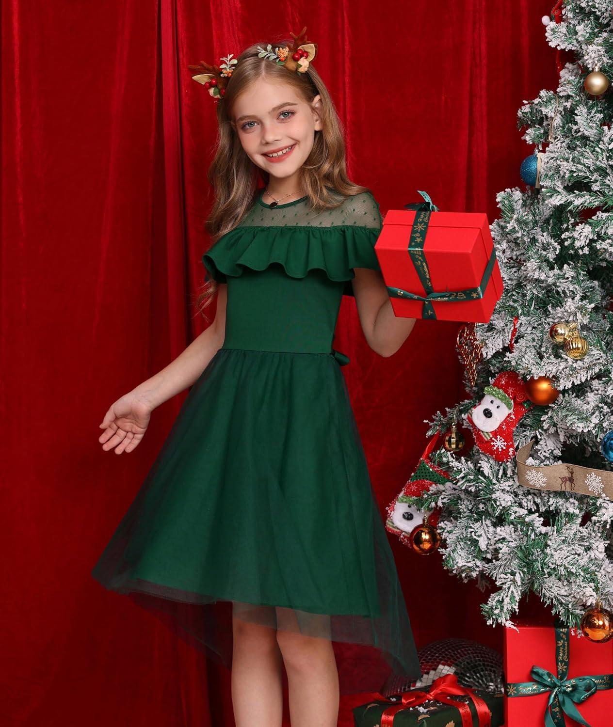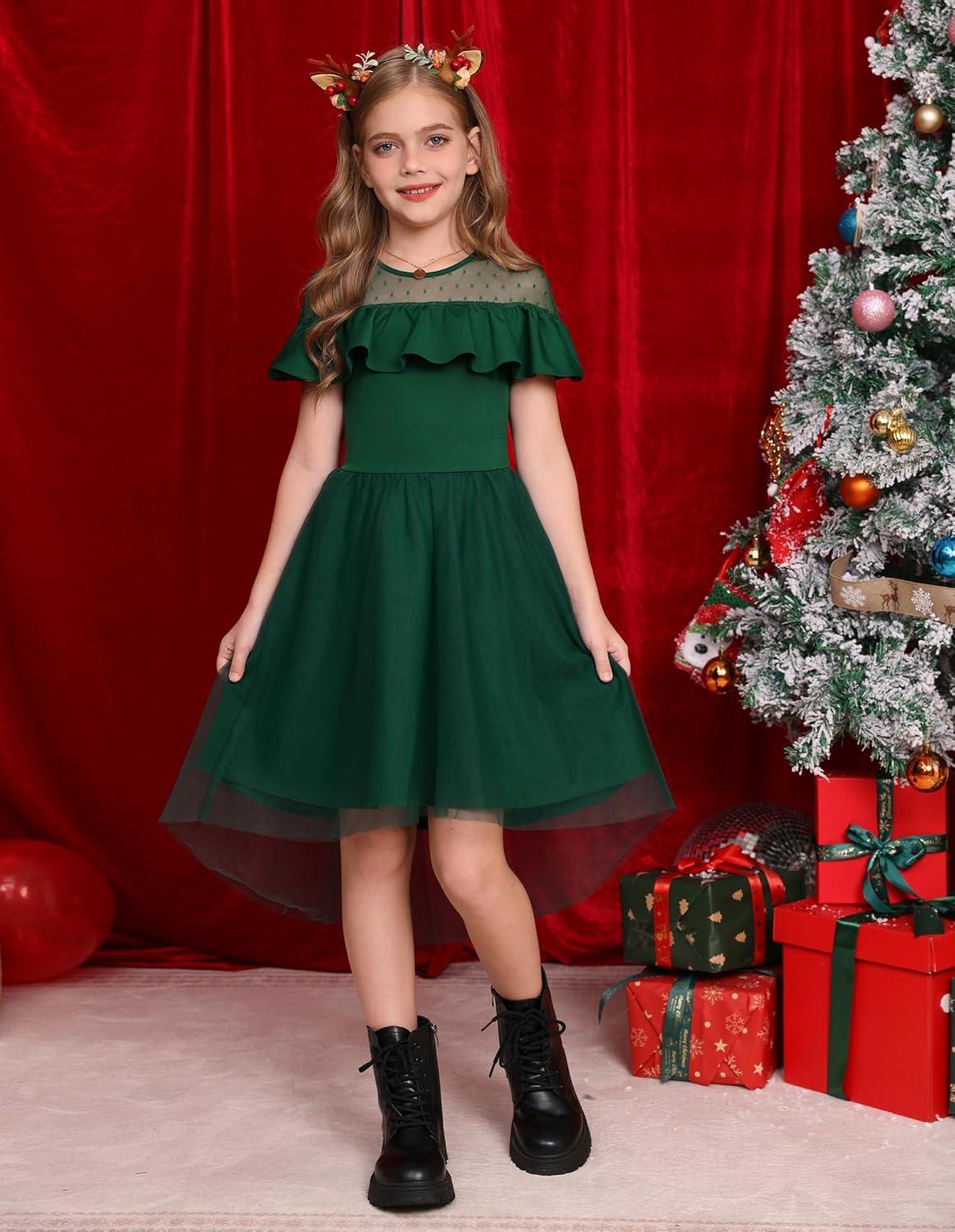 GRACE KARIN Girls Wedding Party Formal Dress Junior Bridemaid Dresses fo Teens Tulle High Low Dress Size 7-14(Green)