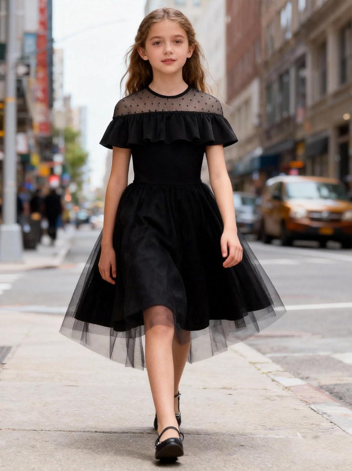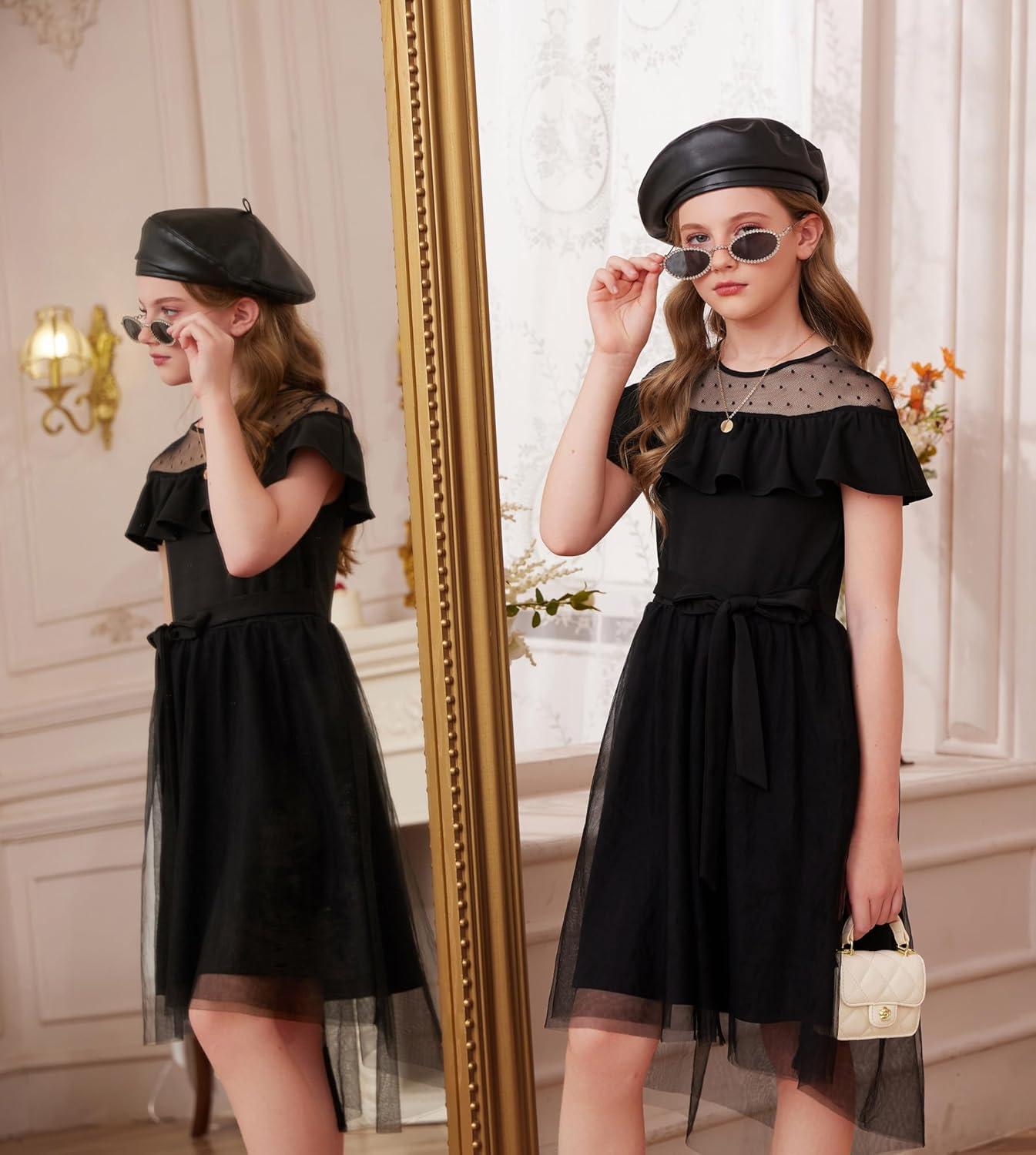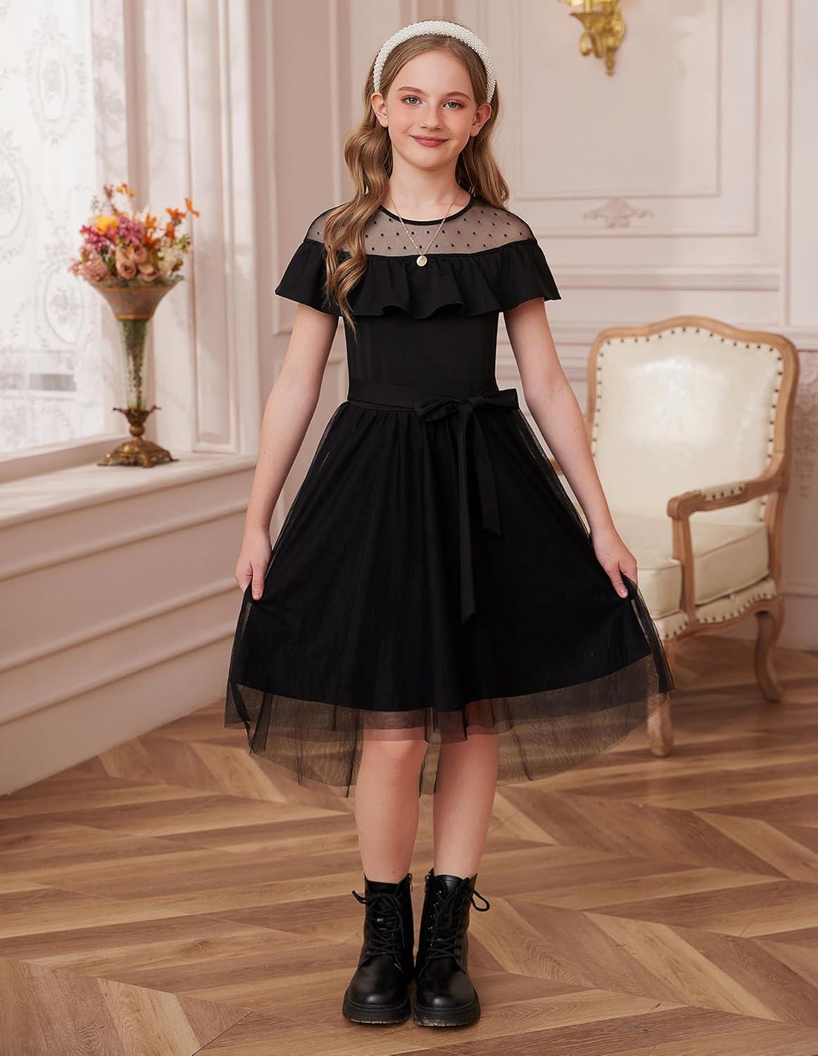 GRACE KARIN Girls Wedding Party Formal Dress Junior Bridemaid Dresses for Teens Tulle High Low Dress Size 7-14(Black)