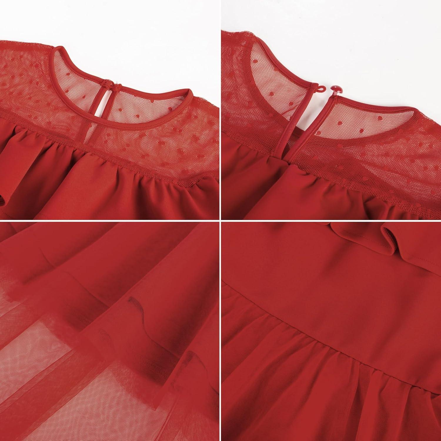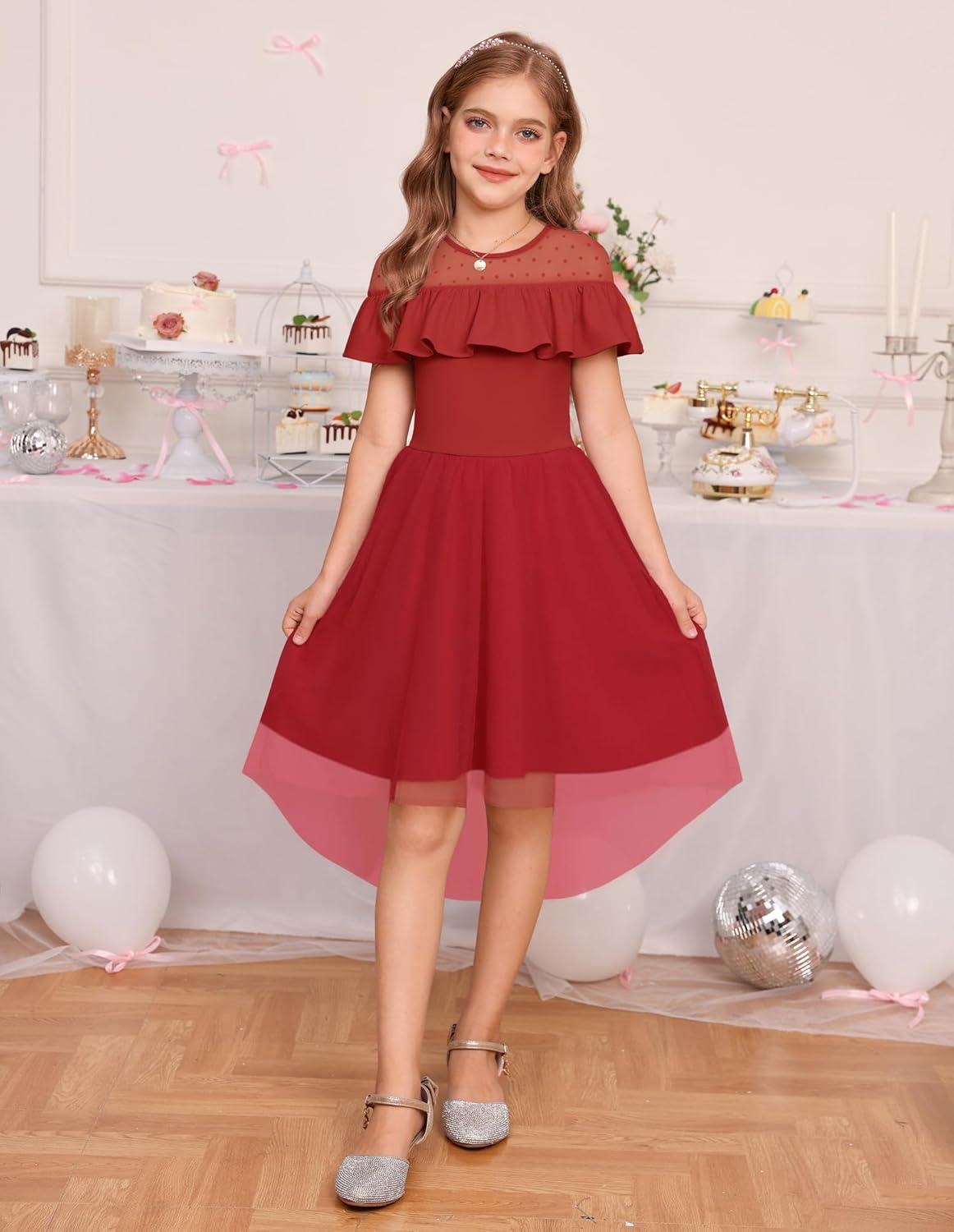 GRACE KARIN Girls Wedding Party Formal Dress Junior Bridemaid Dresses for Teens Tulle High Low Dress Size 7-14(Red)