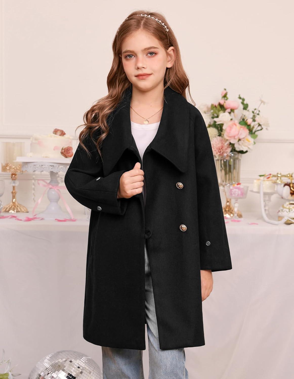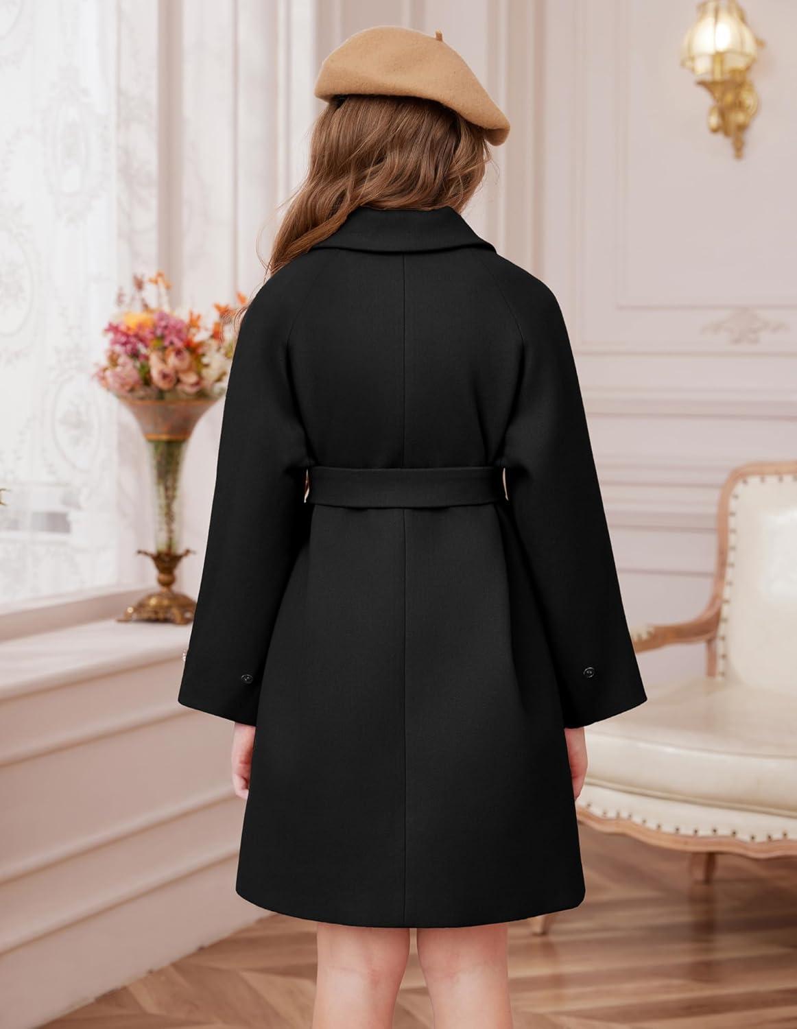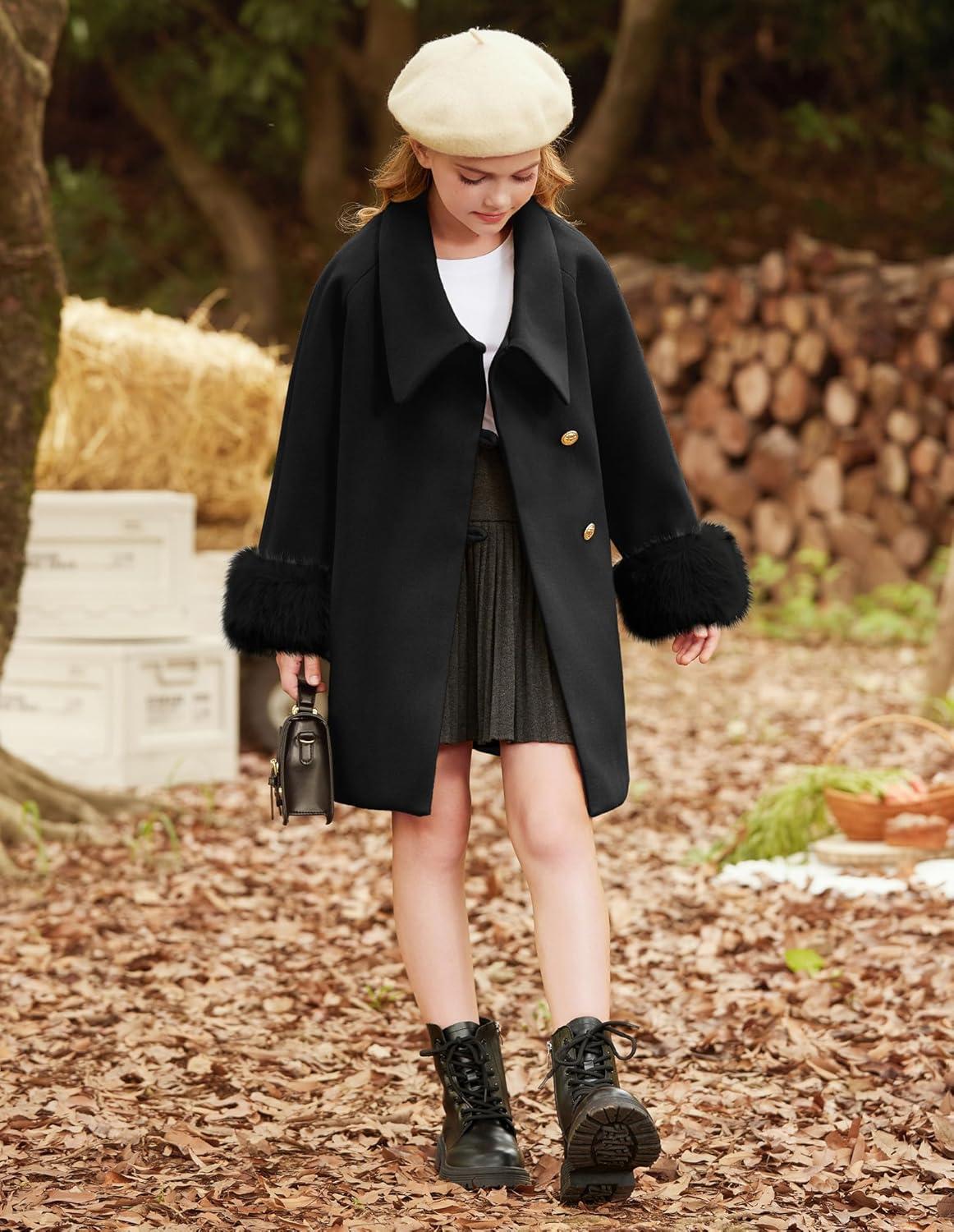 GRACE KARIN Girls Winter Dress Coat Girl Faux Fur Long Sleeve Jacket Kids Long Lined Outerwear with Pockets Belt(Black)