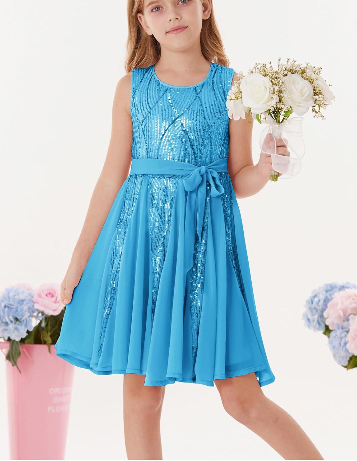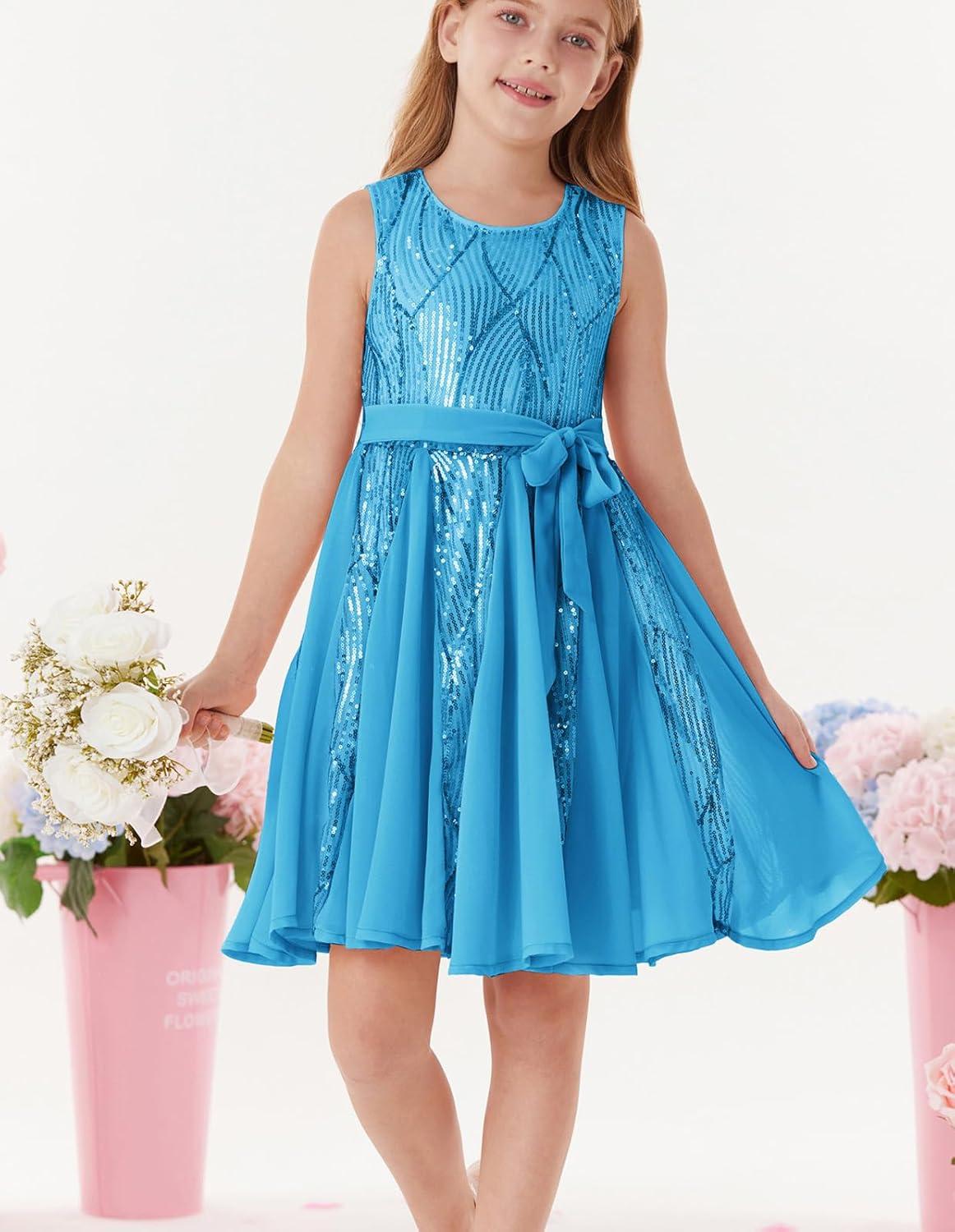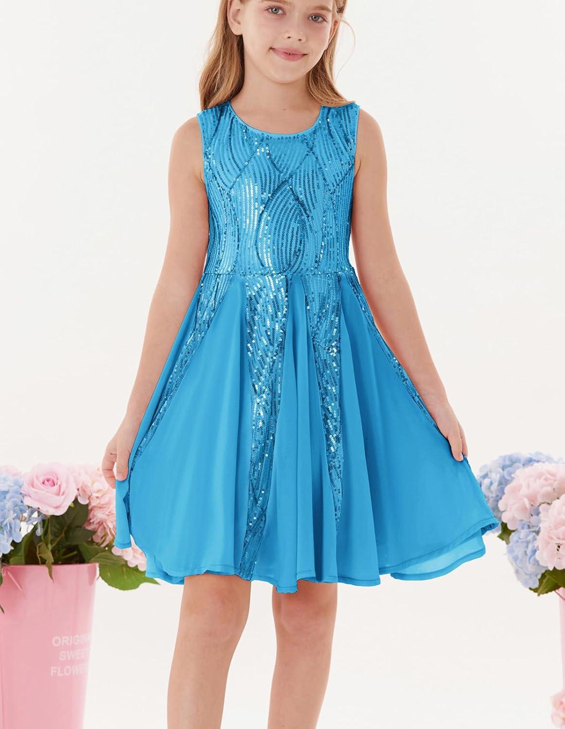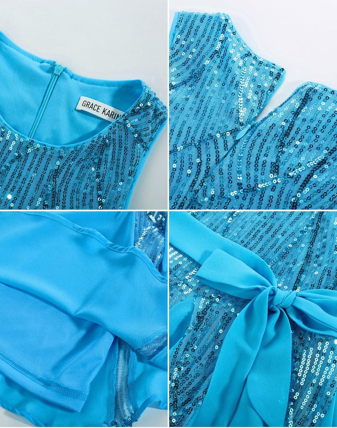 GRACE KARIN Gold Dress for Girls Sparkly Sequin Fancy Party Formal Homecoming Birthday Sleeveless(Light Blue)