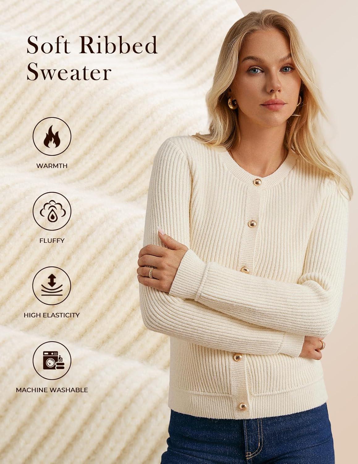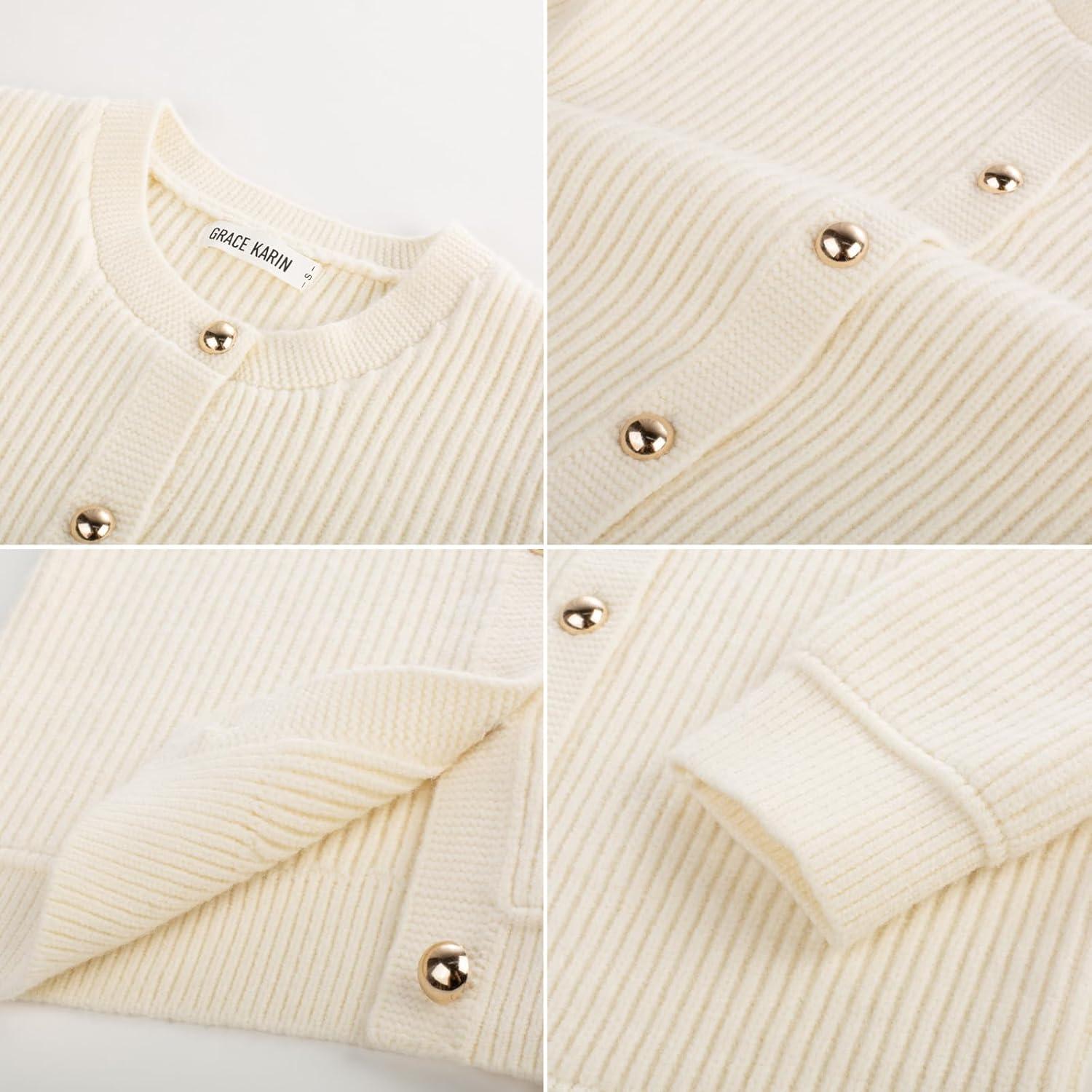 GRACE KARIN Knit Cardigan Sweaters for Women Long Sleeve Ribbed Button Up Sweater 2025 Fall Casual Jacket(Beige)