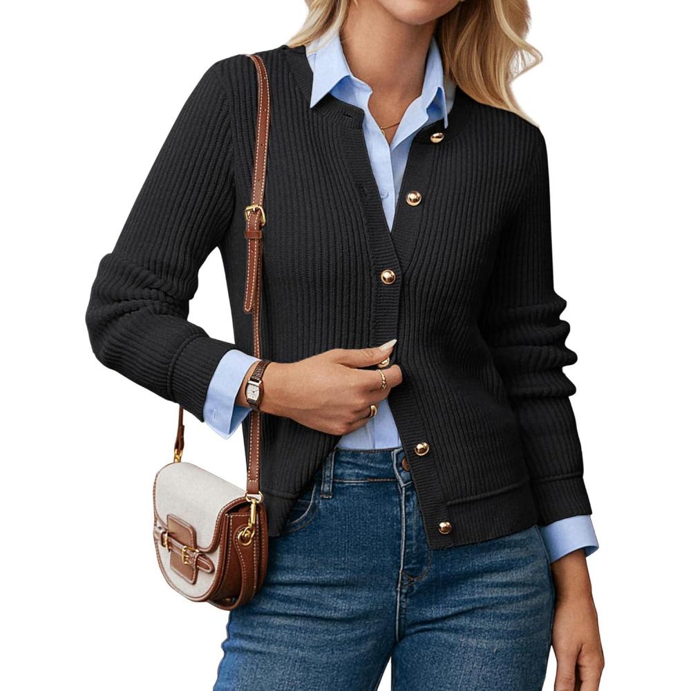 GRACE KARIN Knit Cardigan Sweaters for Women Long Sleeve Ribbed Button Up Sweater 2025 Fall Casual Jacket(Black)
