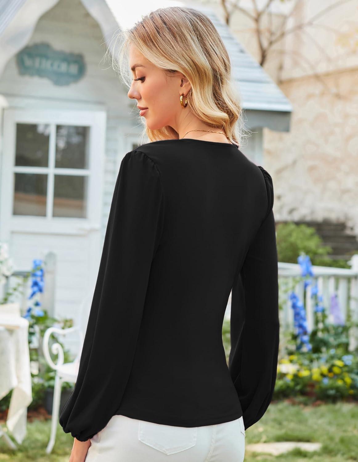 GRACE KARIN Long Sleeve Blouses for Women Dressy Casual, Elegant Wrap Tops V Neck Work Shirts, 2025 Fall Business Outfits(Black)