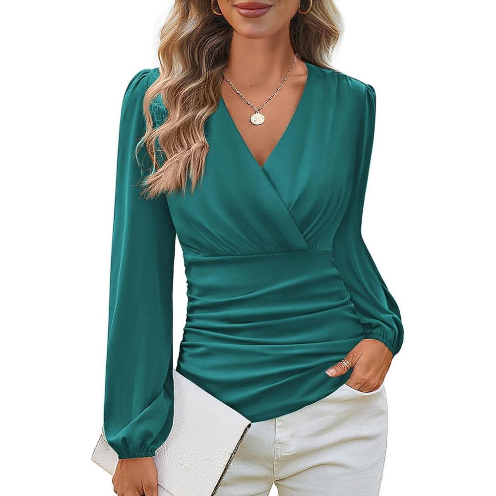 Don’t wait, get up to 50% off on GRACE KARIN Long Sleeve Blouses for Women Dressy Casual, Elegant Wrap Tops V Neck Work Shirts, 2025 Fall Business Outfits(Blue Green) during our end-of-season sale event.