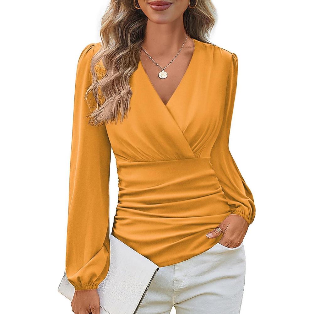 Get a free gift with your purchase of GRACE KARIN Long Sleeve Blouses for Women Dressy Casual, Elegant Wrap Tops V Neck Work Shirts, 2025 Fall Business Outfits(Mustard Yellow). Limited quantities available!