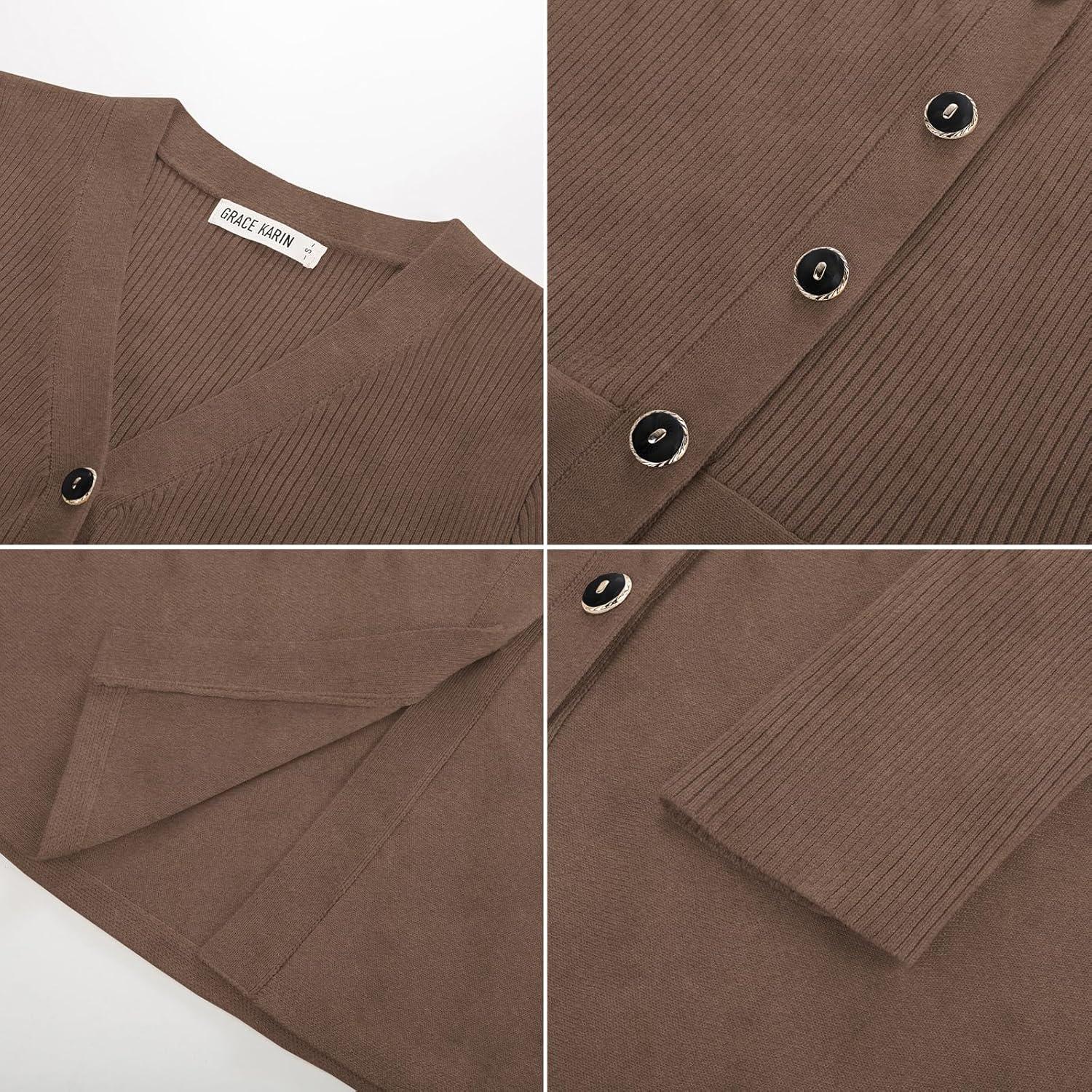 imageGRACE KARIN Long Sleeve Cardigan Sweaters for Women Button Up Knit Blazer Lightweight Business Casual Peplum TopsBrown