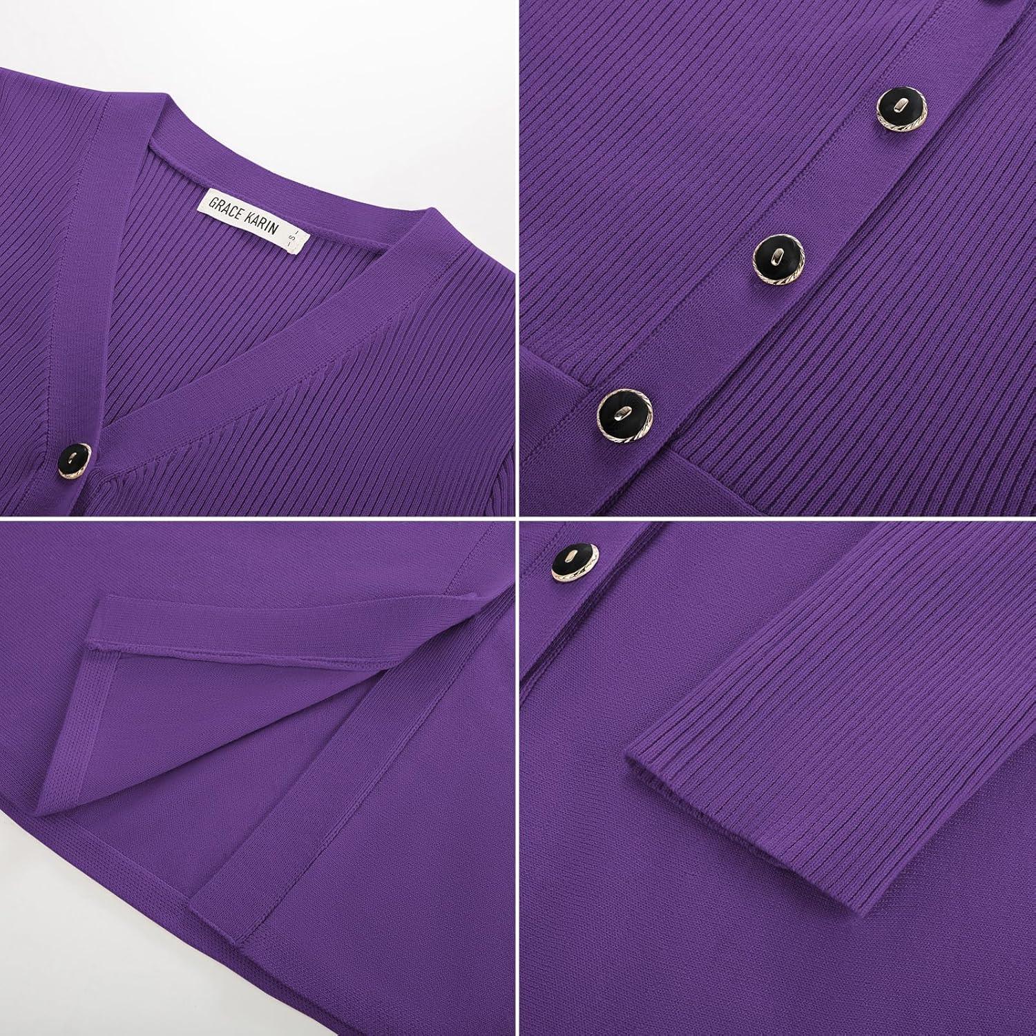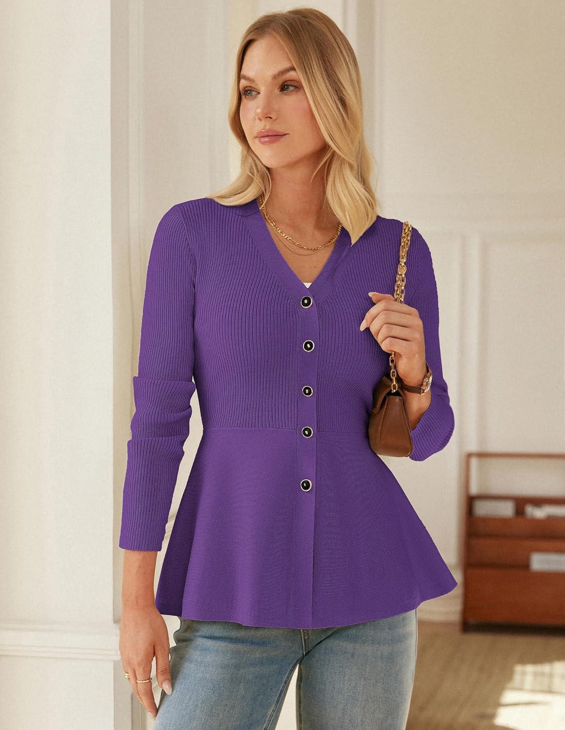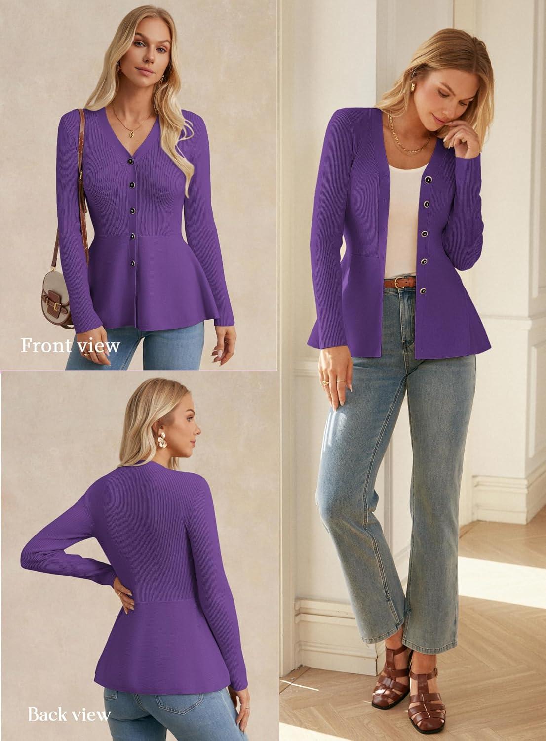 GRACE KARIN Long Sleeve Cardigan Sweaters for Women, Button Up Knit Blazer, Lightweight Business Casual Peplum Tops(Purple)