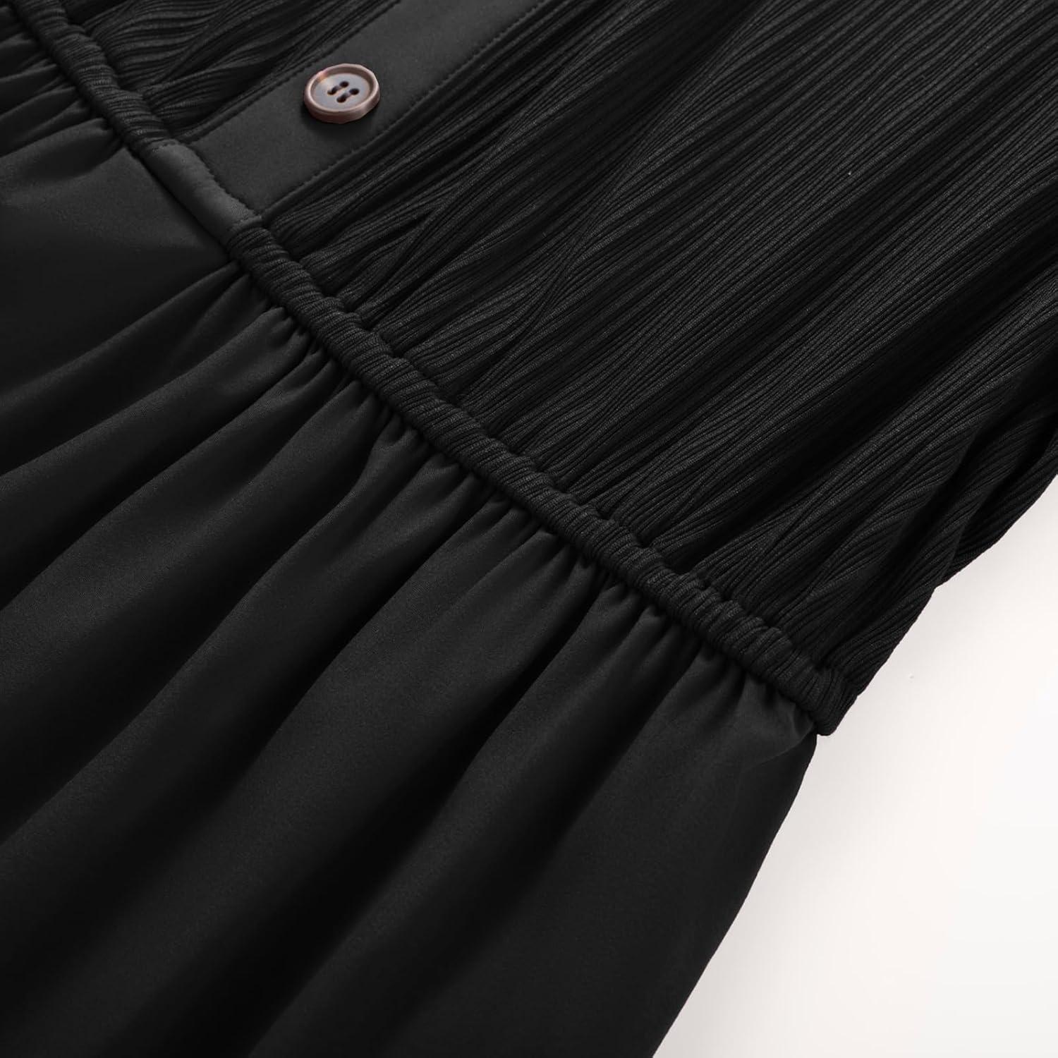 GRACE KARIN Long Sleeve Dress for Women 2025 Fall V Neck Tiered A-Line Dress Casual Work Maxi Dresses with Pockets(Black)