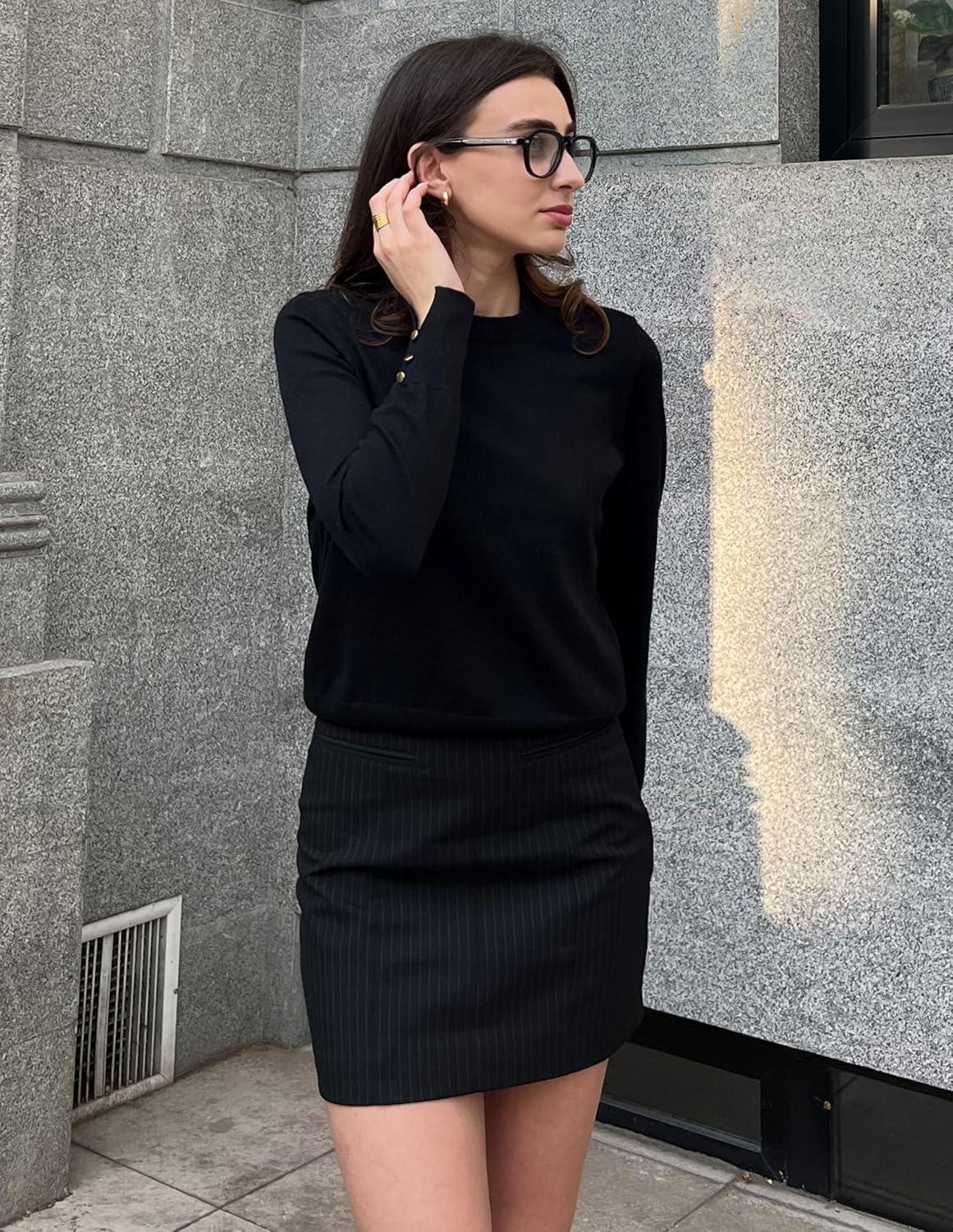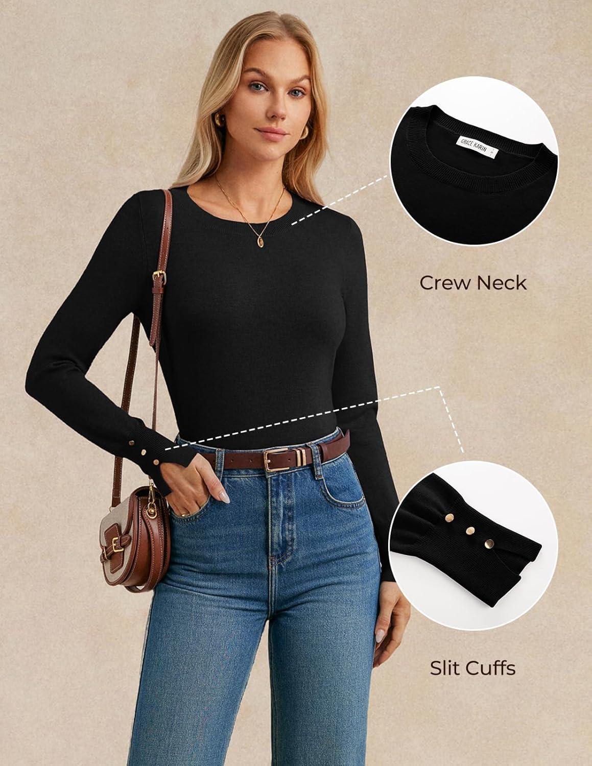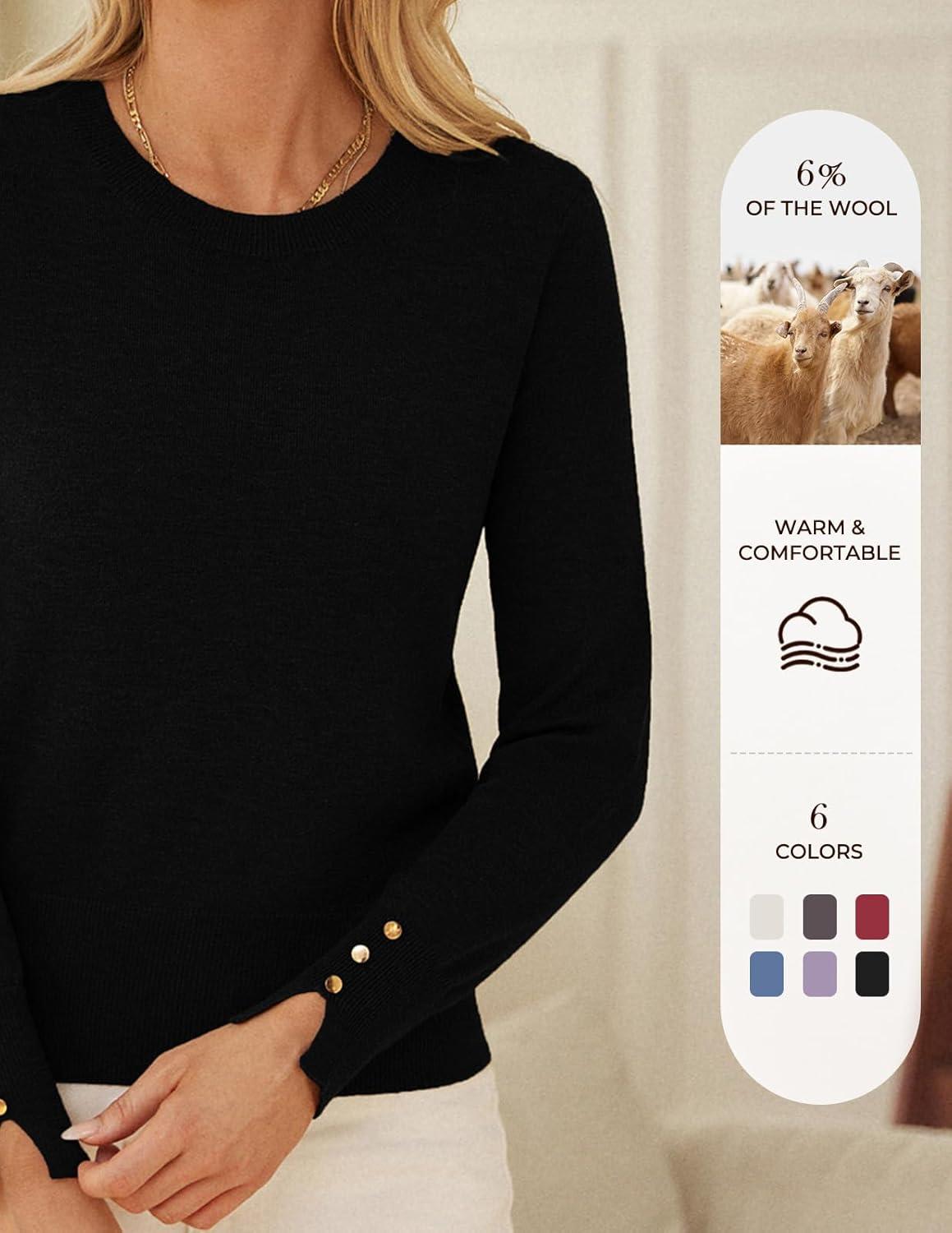 GRACE KARIN Long Sleeve Sweaters Merino Wool Blend, Lightweight Crewneck Sweater 2025 Fall, Fashion Pullover Knit Tops(Black)