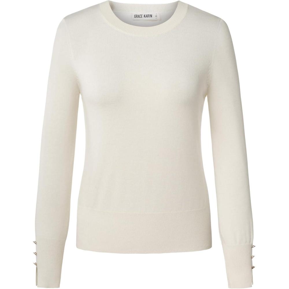 imageGRACE KARIN Long Sleeve Sweaters Merino Wool Blend Lightweight Crewneck Sweater 2025 Fall Fashion Pullover Knit TopsWhite