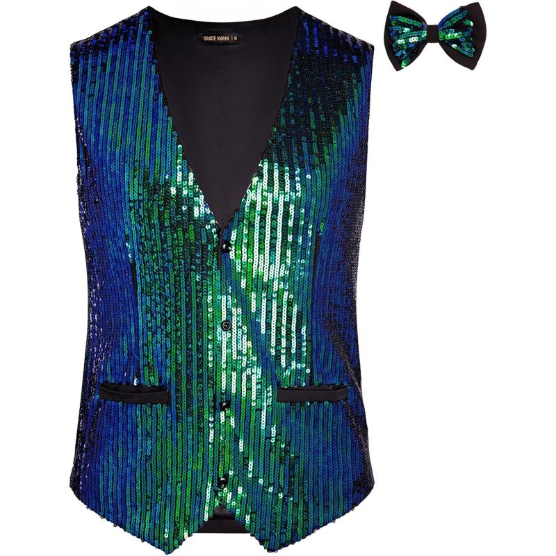imageGRACE KARIN Mens Sequin Vest Slim Fit Shiny Dress Waistcoat Bowtie Set for Wedding Prom PartyGreen