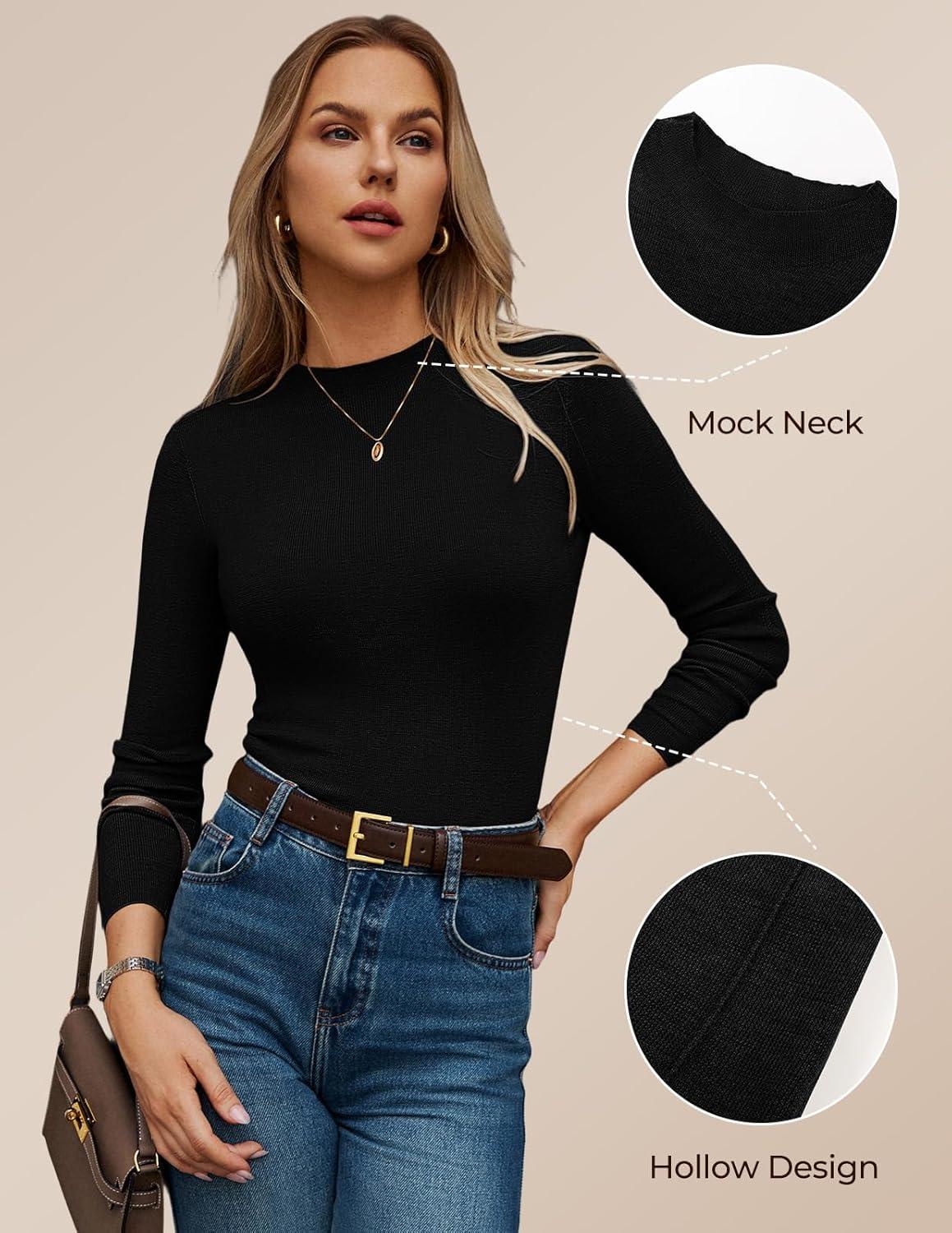 imageGRACE KARIN Merino Wool Sweaters for Women Mock Neck Base Layer Long Sleeve Soft Fitted Pullover SweaterBlack