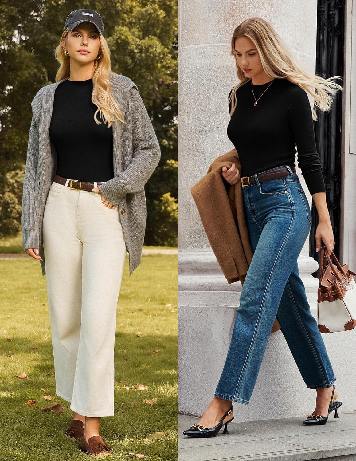 GRACE KARIN Merino Wool Sweaters for Women Mock Neck Base Layer Long Sleeve Soft Fitted Pullover Sweater(Black)