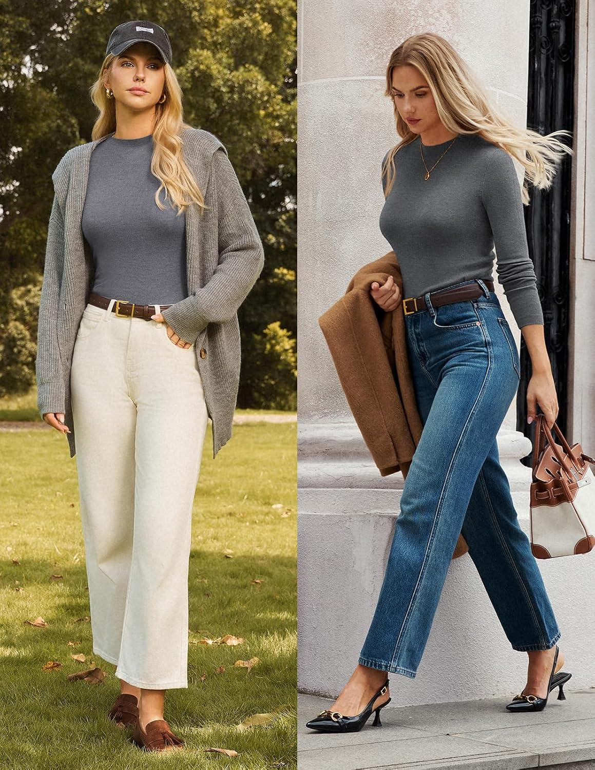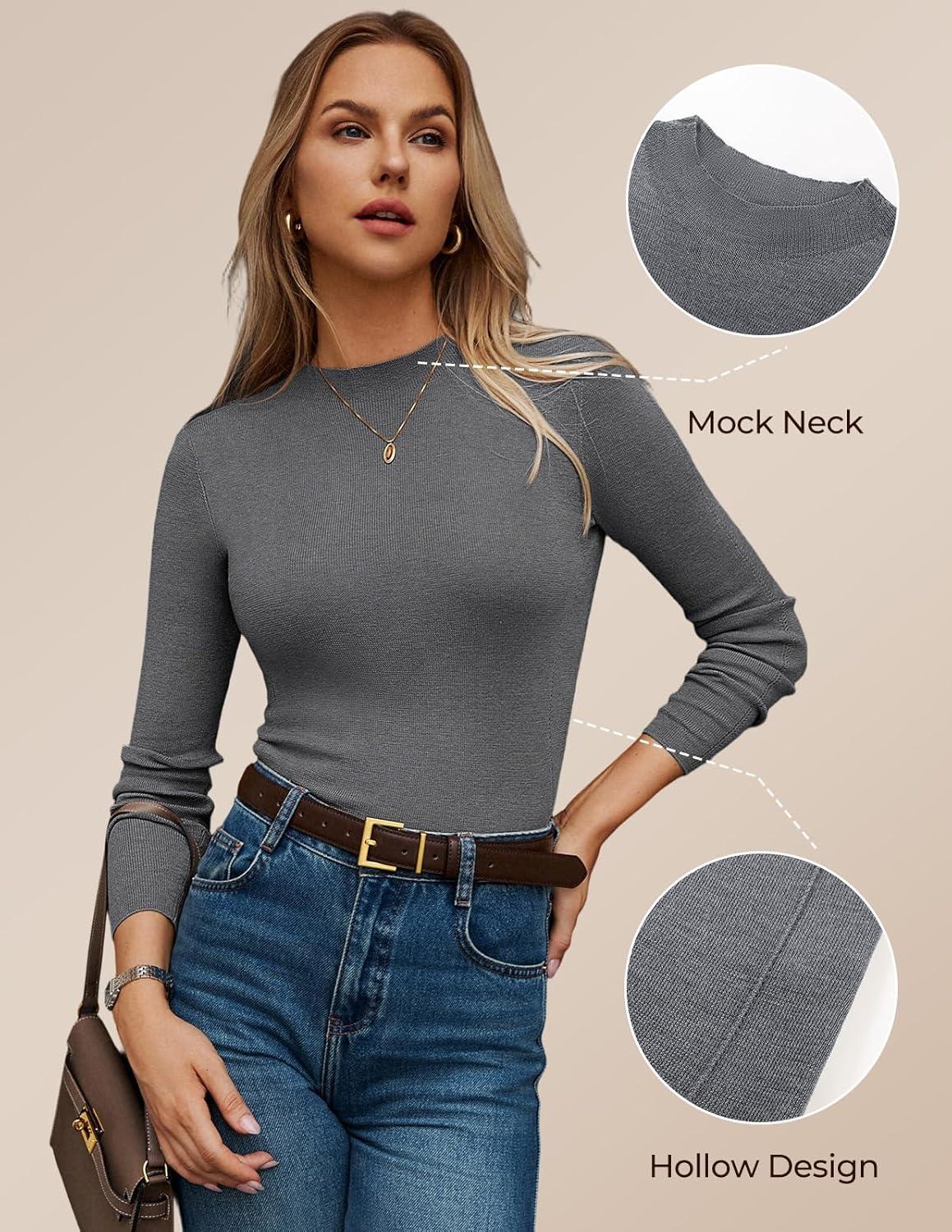 GRACE KARIN Merino Wool Sweaters for Women Mock Neck Base Layer Long Sleeve Soft Fitted Pullover Sweater(Grey)