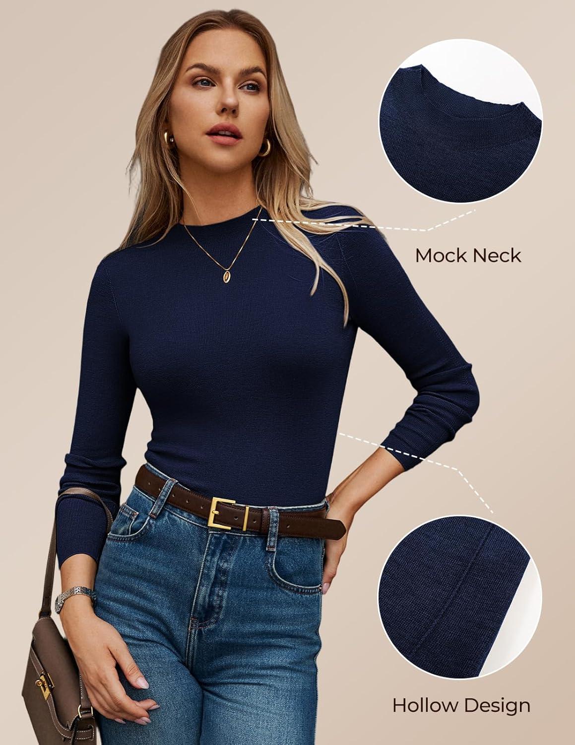 imageGRACE KARIN Merino Wool Sweaters for Women Mock Neck Base Layer Long Sleeve Soft Fitted Pullover SweaterNavy Blue