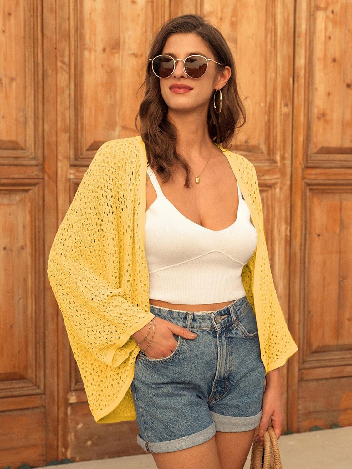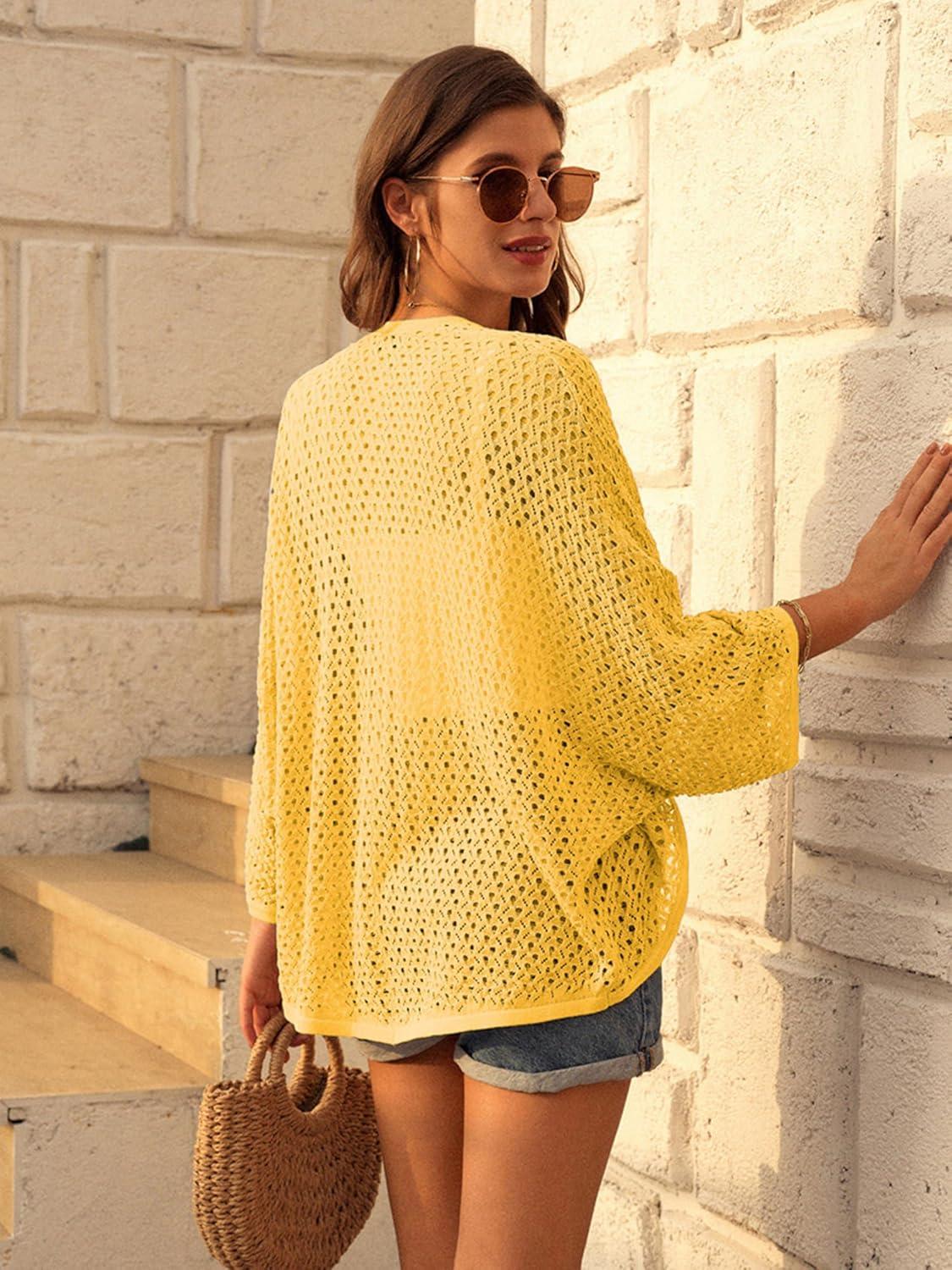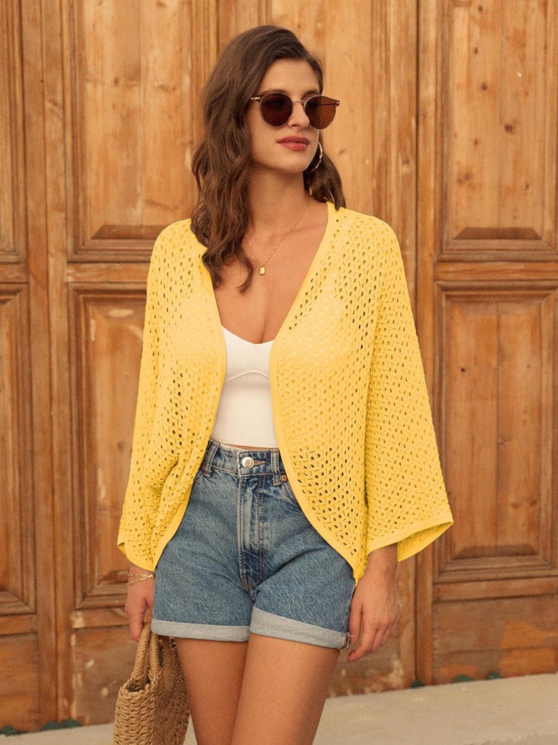 Don’t break the bank! Get the GRACE KARIN Open Front 3/4 Sleeve Batwing Cardigan for Women Lightweight Crochet Summer Cardigan Hollow-Out Cover Ups(Yellow) you want at a price you can afford during our markdown sale.