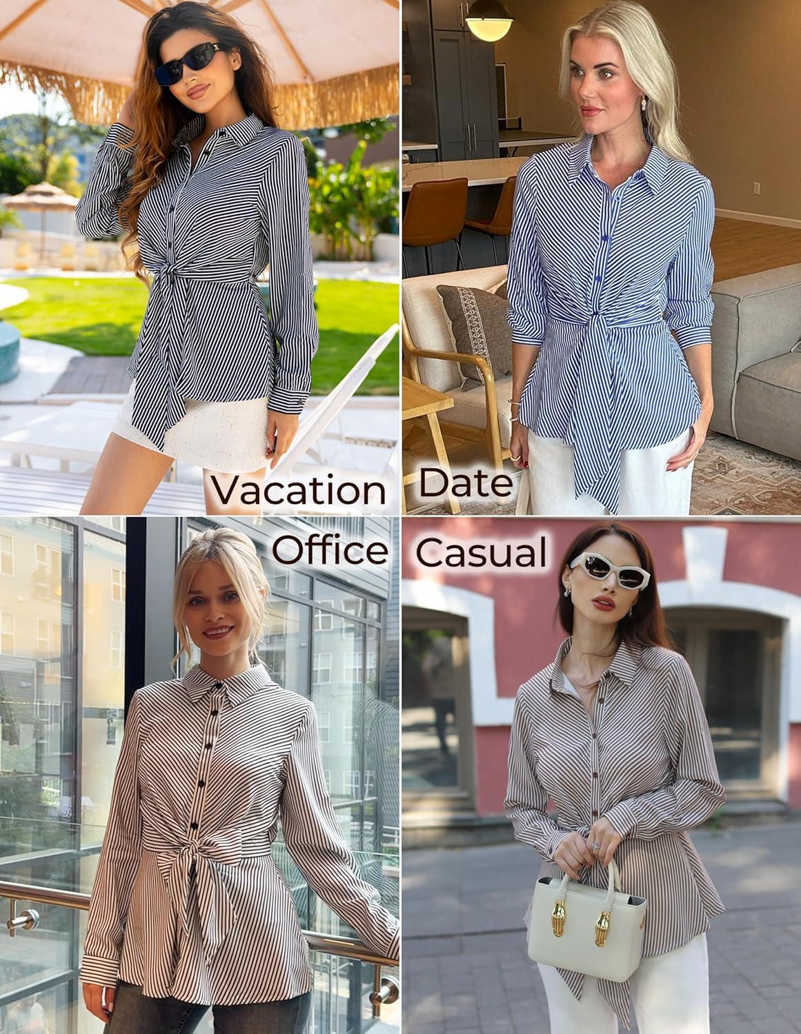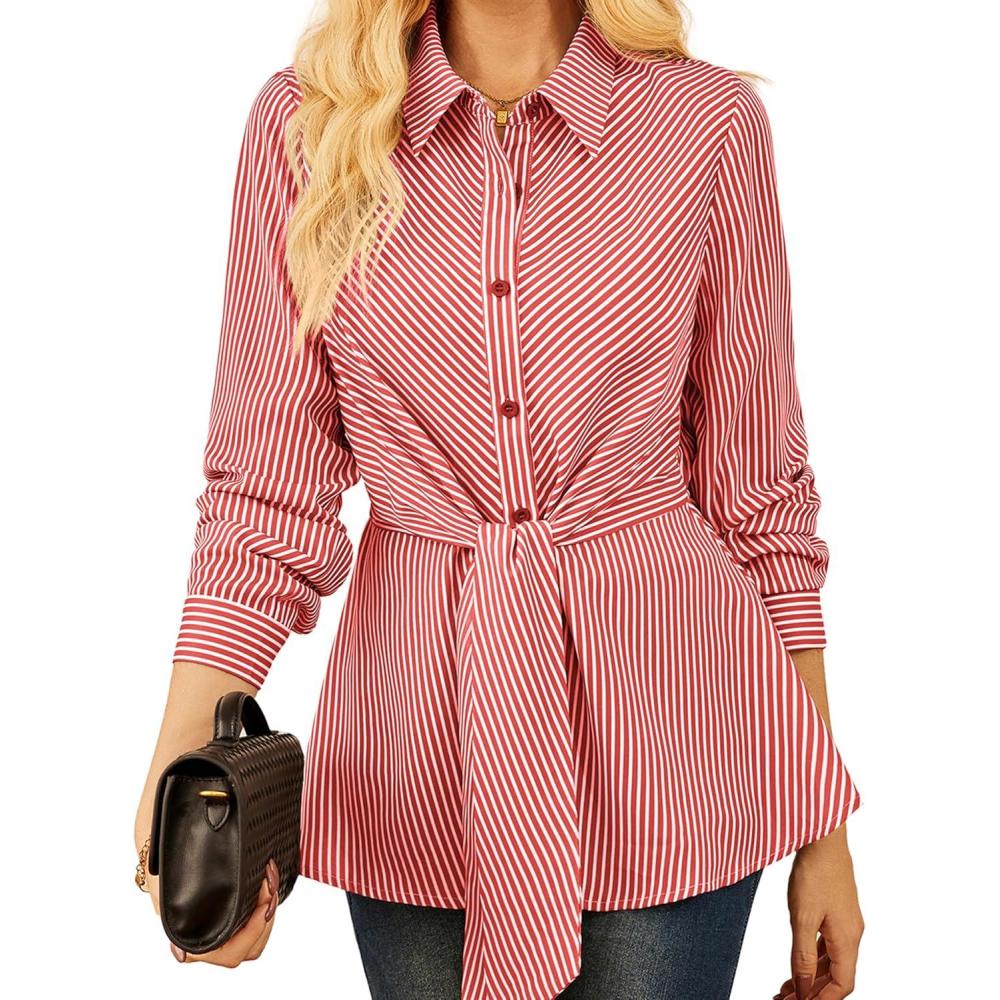 Be the first to review “GRACE KARIN Peplum Tops for Women Tie Front Striped Button Down Shirt Collared Long Sleeve Business Casual Work Office Blouse(Red)”